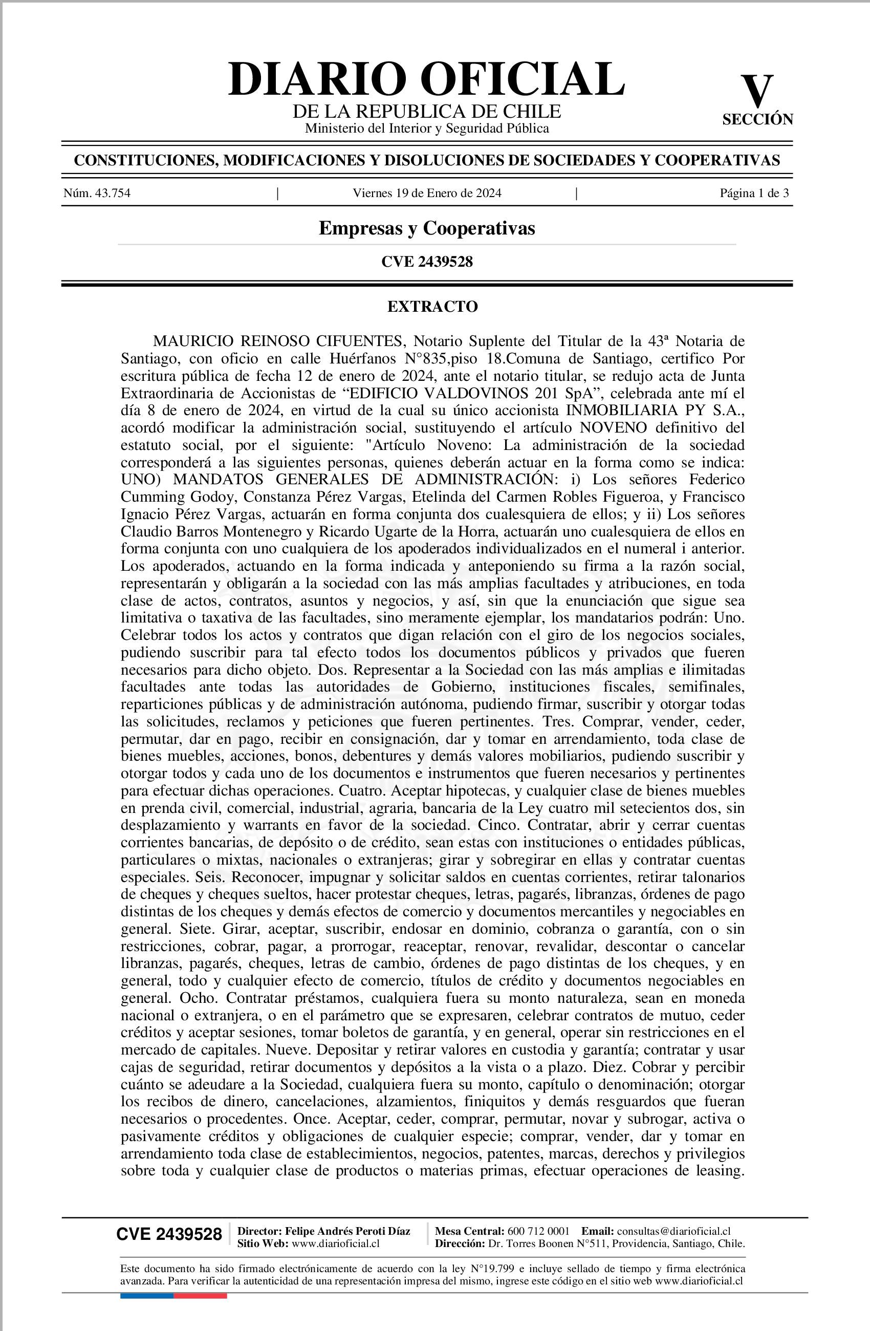 Extracto 19-01-2024 Diario Oficial Edición Electrónica |