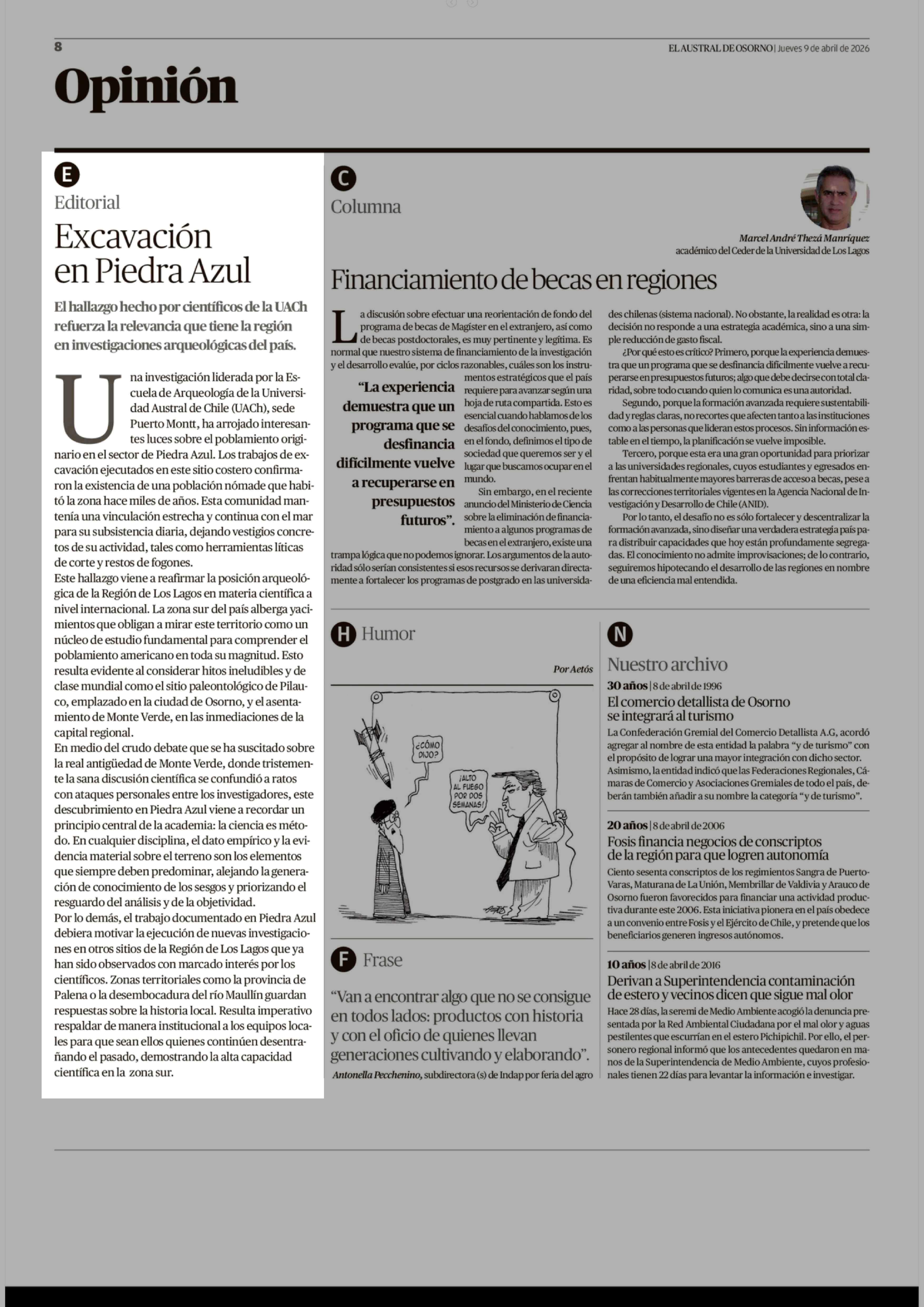 Editorial: Excavación en Piedra Azul 09-04-2026 El Austral de Osorno |