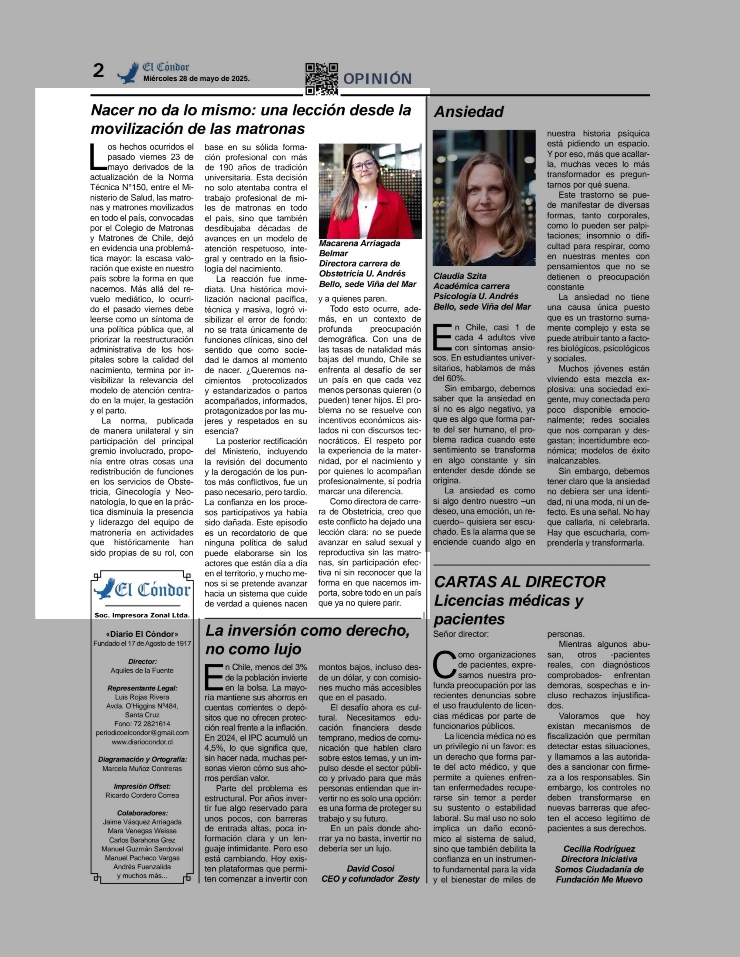 COLUMNAS DE OPINIÓN: una lección desde la movilización de las matronas 29-05-2025 Diario El Cóndor |