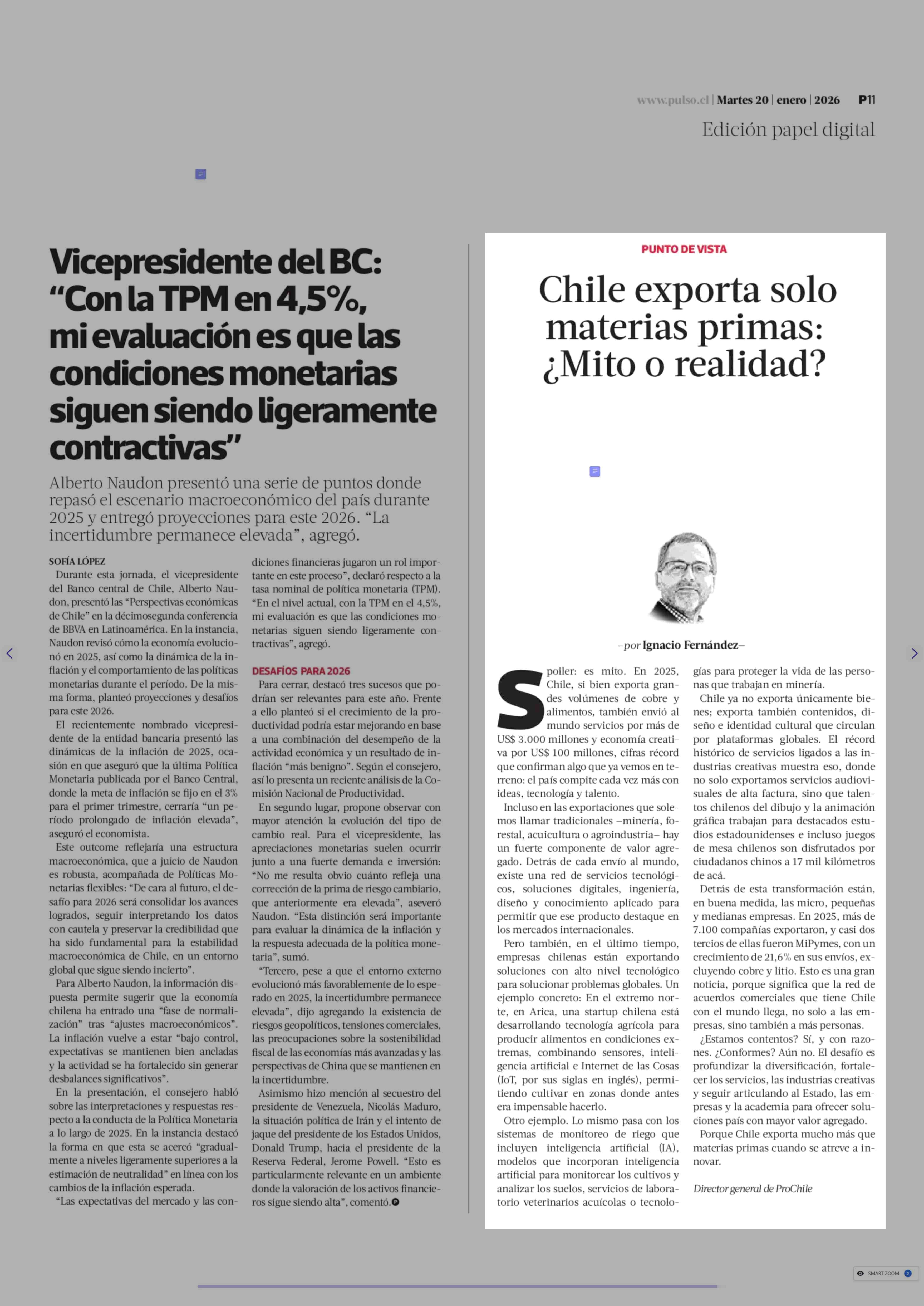 Columnas de Opinión: Chile exporta solo materias primas: ¿Mito o realidad? 20-01-2026 La Tercera |