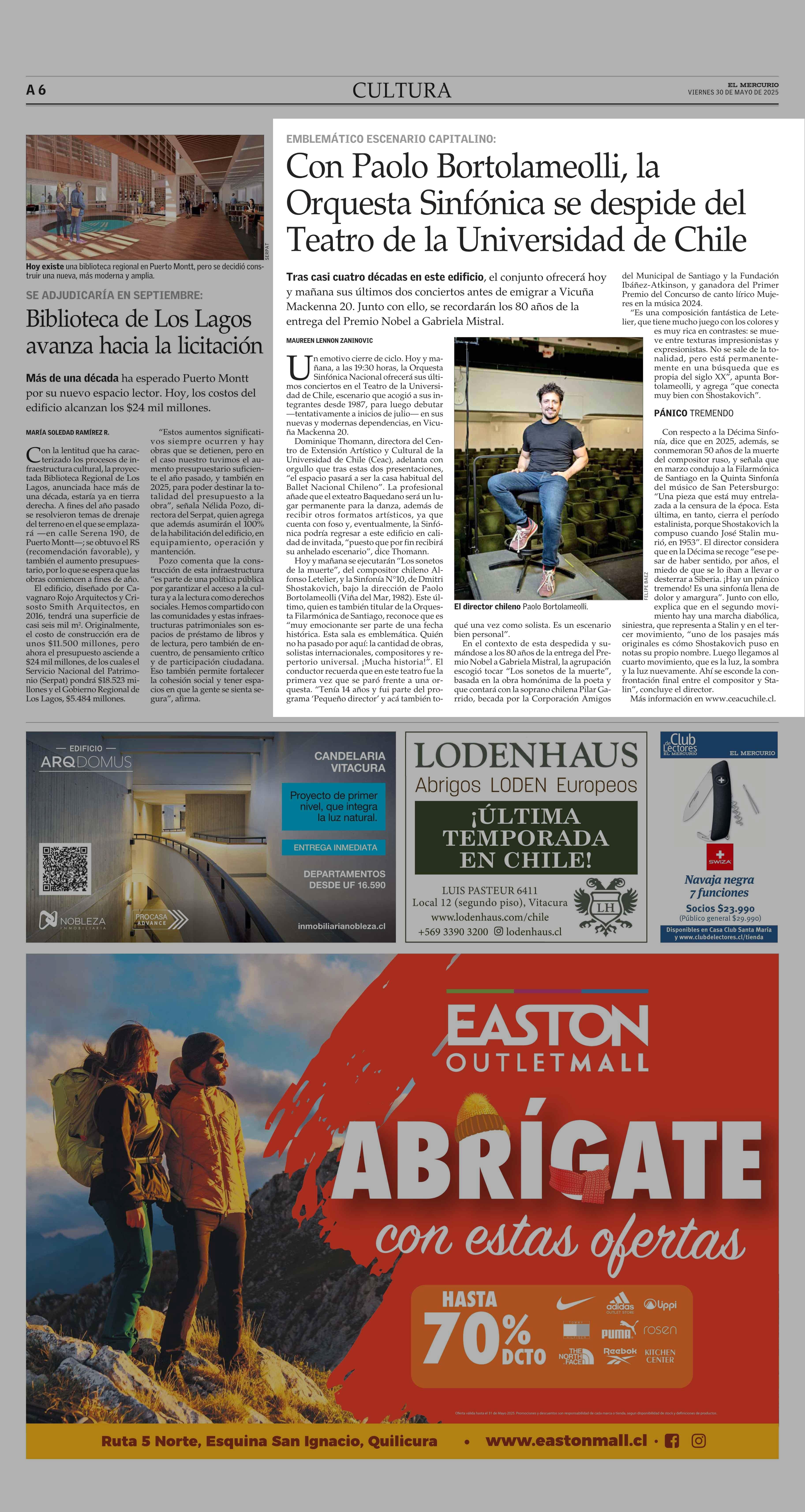 Con Paolo Bortolameolli, la Orquesta Sinfónica se despide del Teatro de la Universidad de Chile 30-05-2025 El Mercurio |