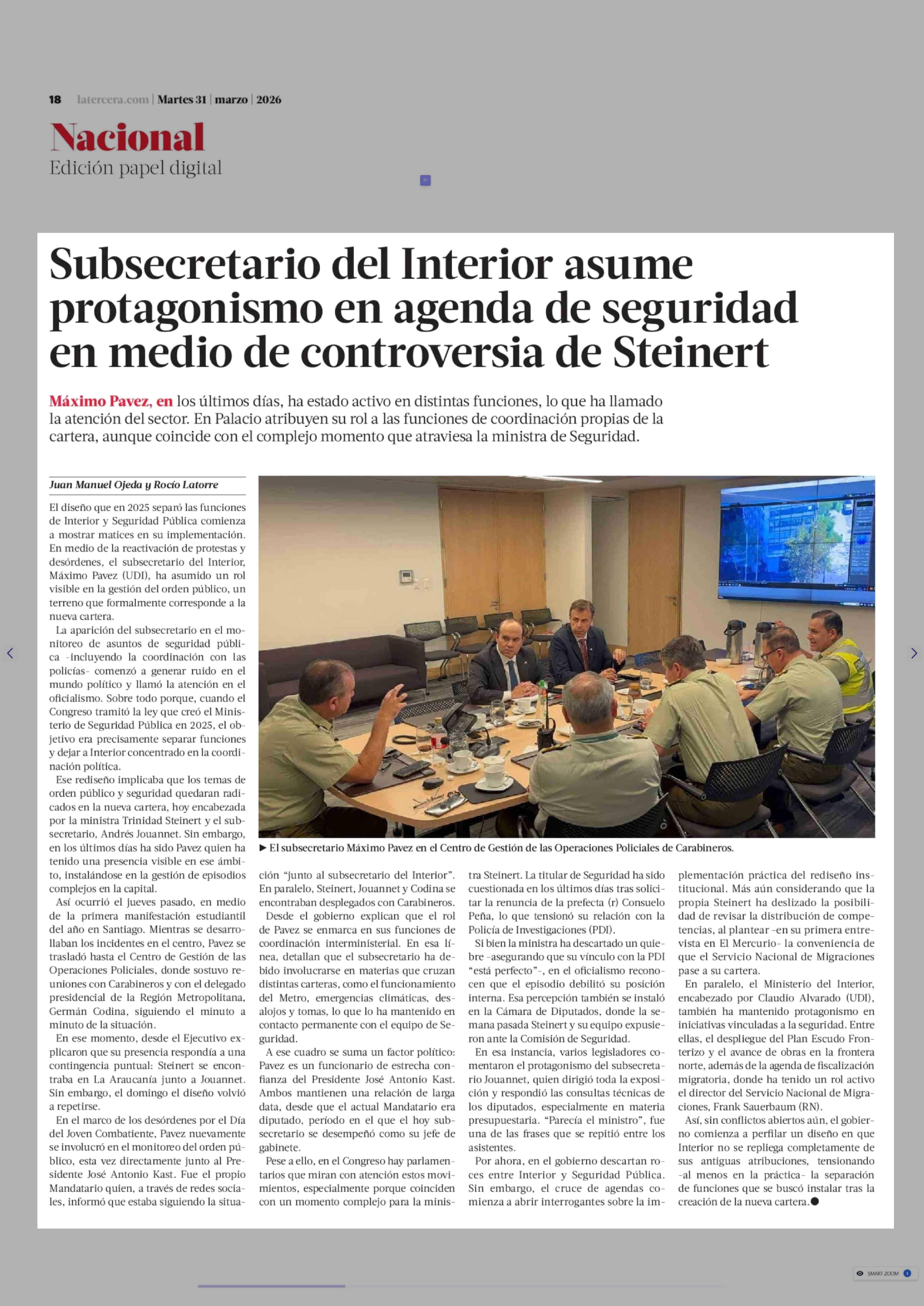 Título: Subsecretario del Interior asume protagonismo en agenda de seguridad en medio de controversia de Steinert