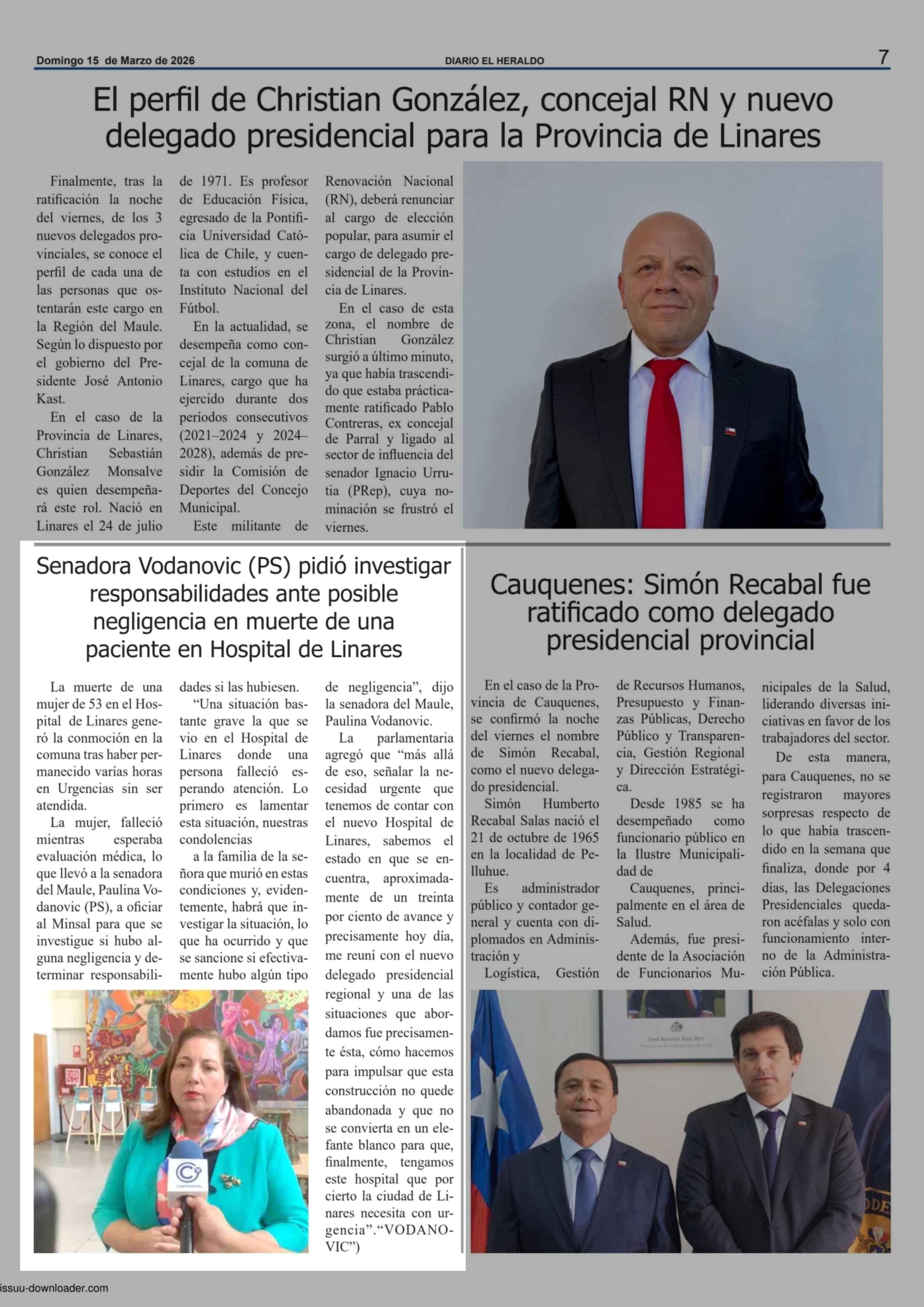 Senadora Vodanovic (PS) pidió investigar responsabilidades ante posible negligencia en muerte de una paciente en Hospital de Linares 15-03-2026 El Heraldo |