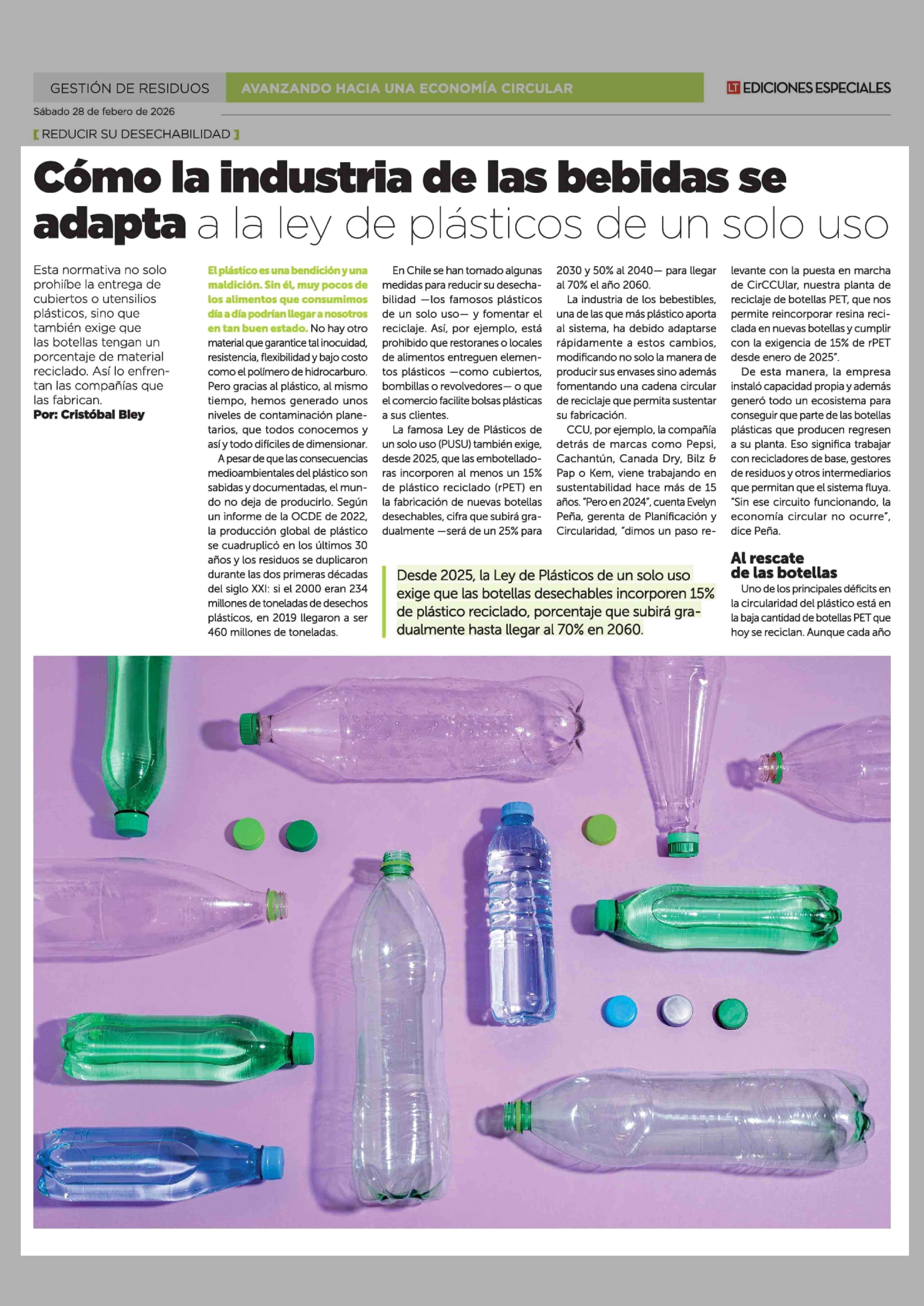 Cómo la industria de las bebidas se adapta a la ley de plásticos de un solo uso 28-02-2026 La Tercera |