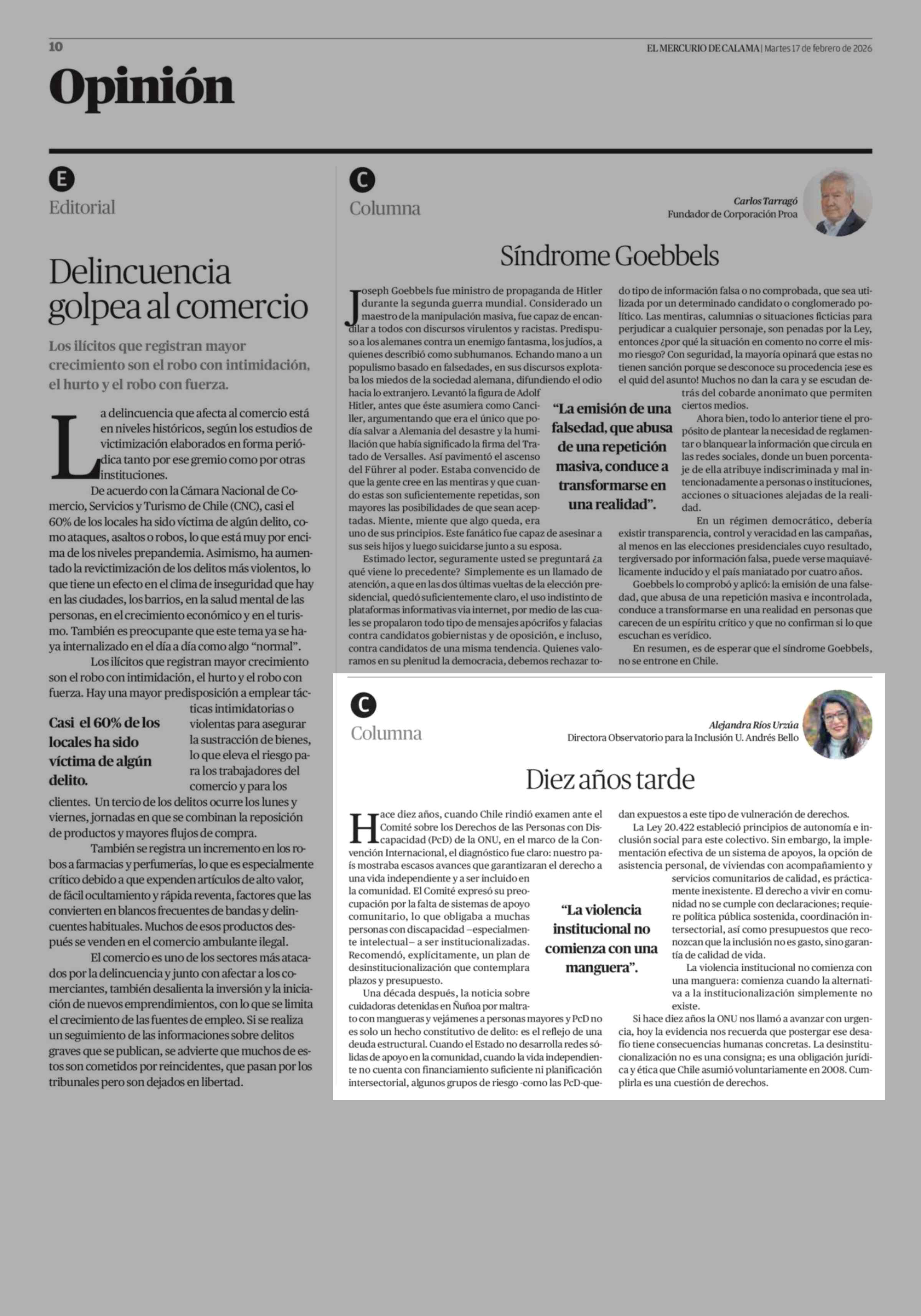 Columnas de Opinión: Diez años tarde 17-02-2026 El Mercurio de Calama |