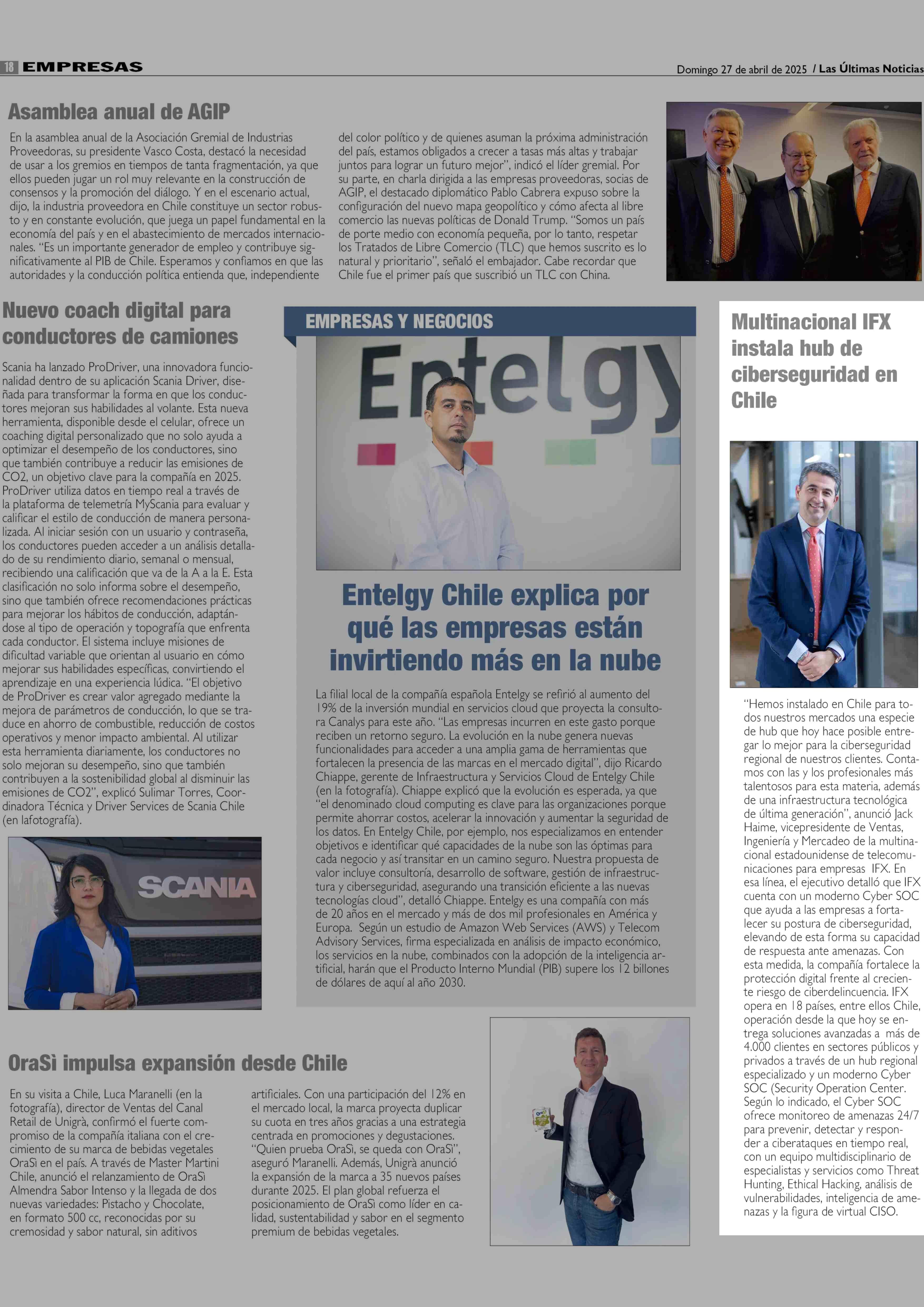 Multinacional IFX instala hub de ciberseguridad en Chile 27-04-2025 Las Últimas Noticias |