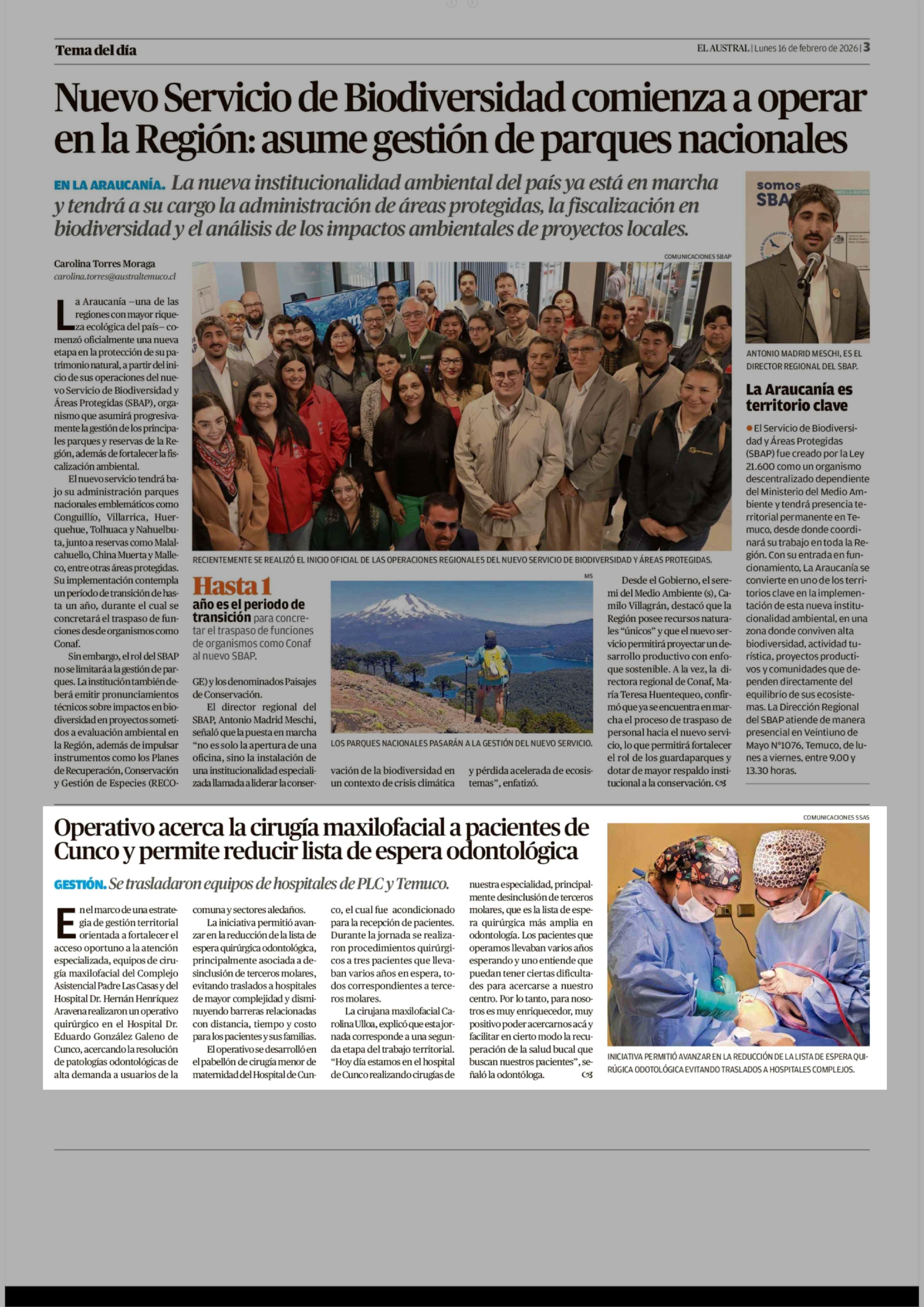 Operativo acerca la cirugía maxilofacial a pacientes de Cunco y permite reducir lista de espera odontológica 16-02-2026 El Austral de la Araucanía |