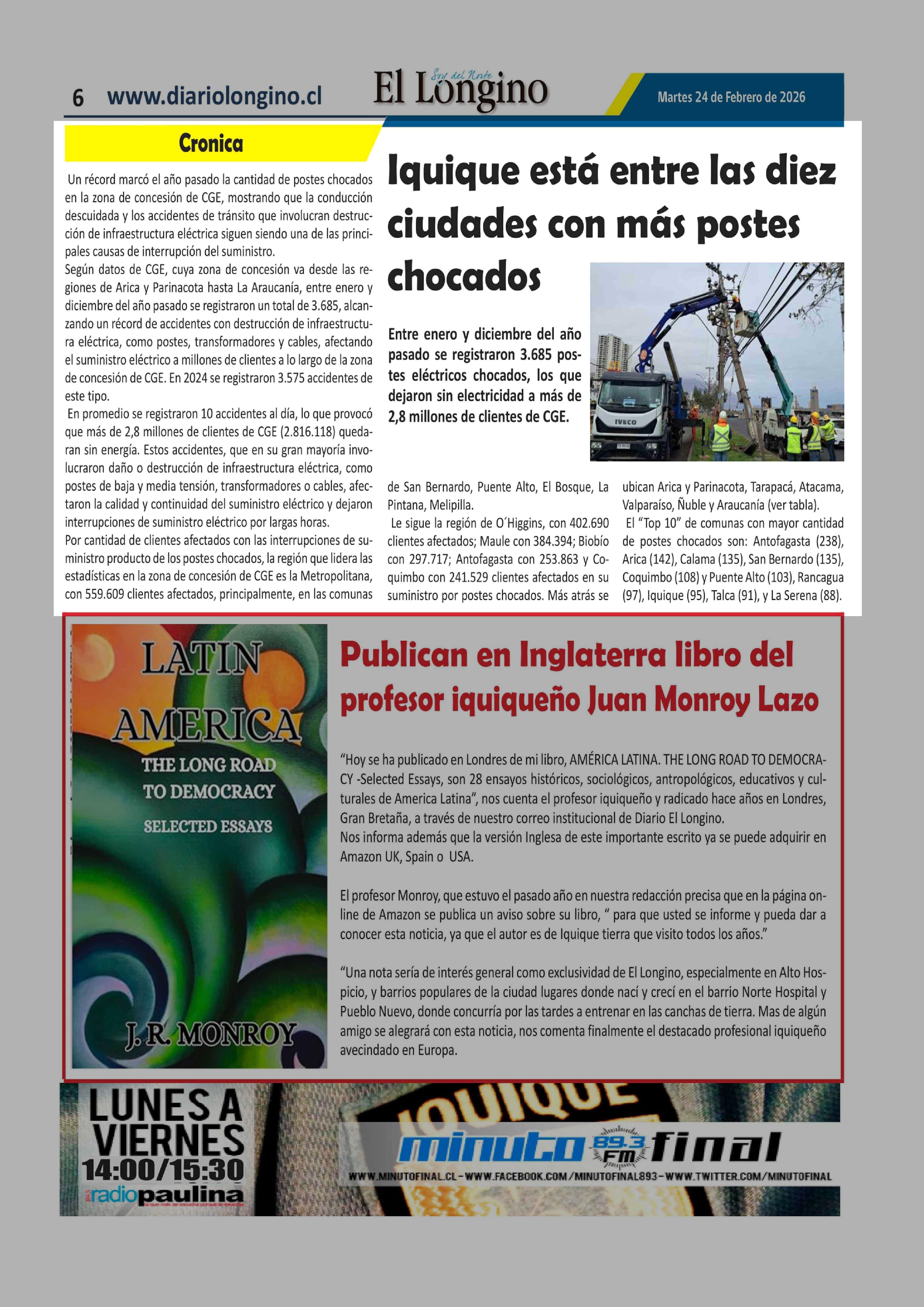 Iquique está entre las diez ciudades con más postes chocados 24-02-2026 El Longino |