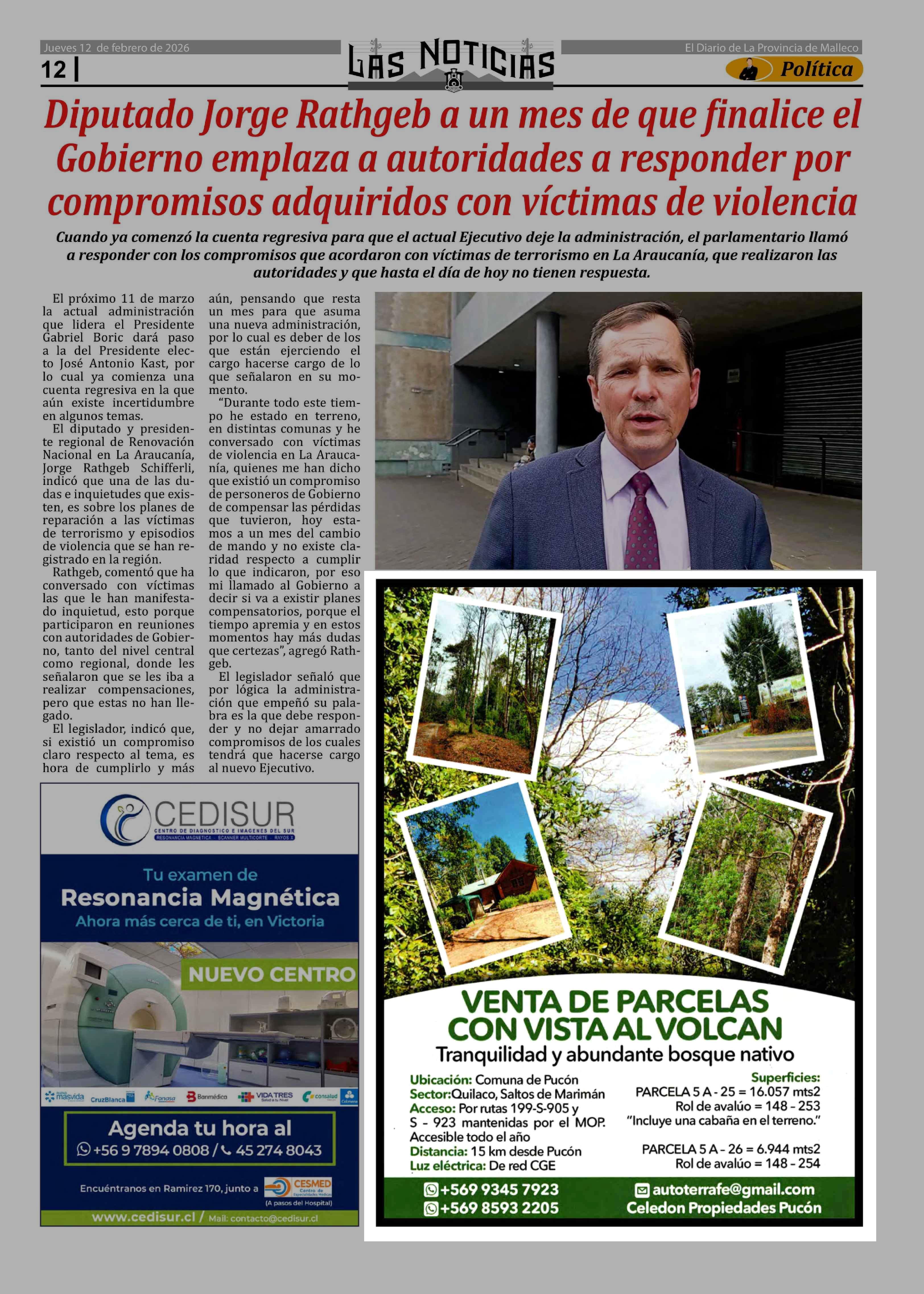 | Fecha: | 12-02-2026 | Sector: | Aviso Grandes Terrenos | Región: | Región de la Araucanía |