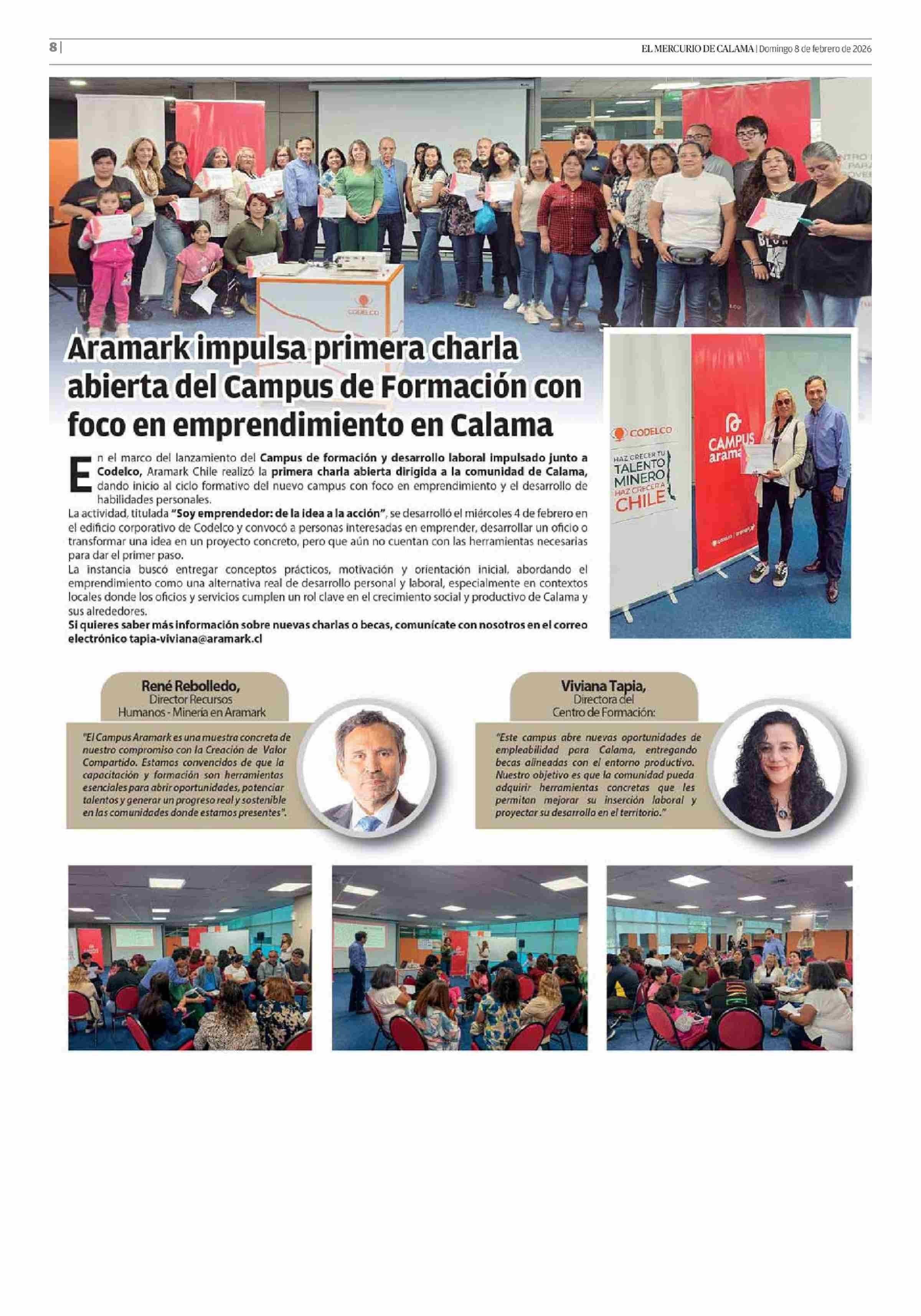 Aramark impulsa primera charla abierta del Campus de Formación con foco en emprendimiento en Calama 08-02-2026 El Mercurio de Calama |