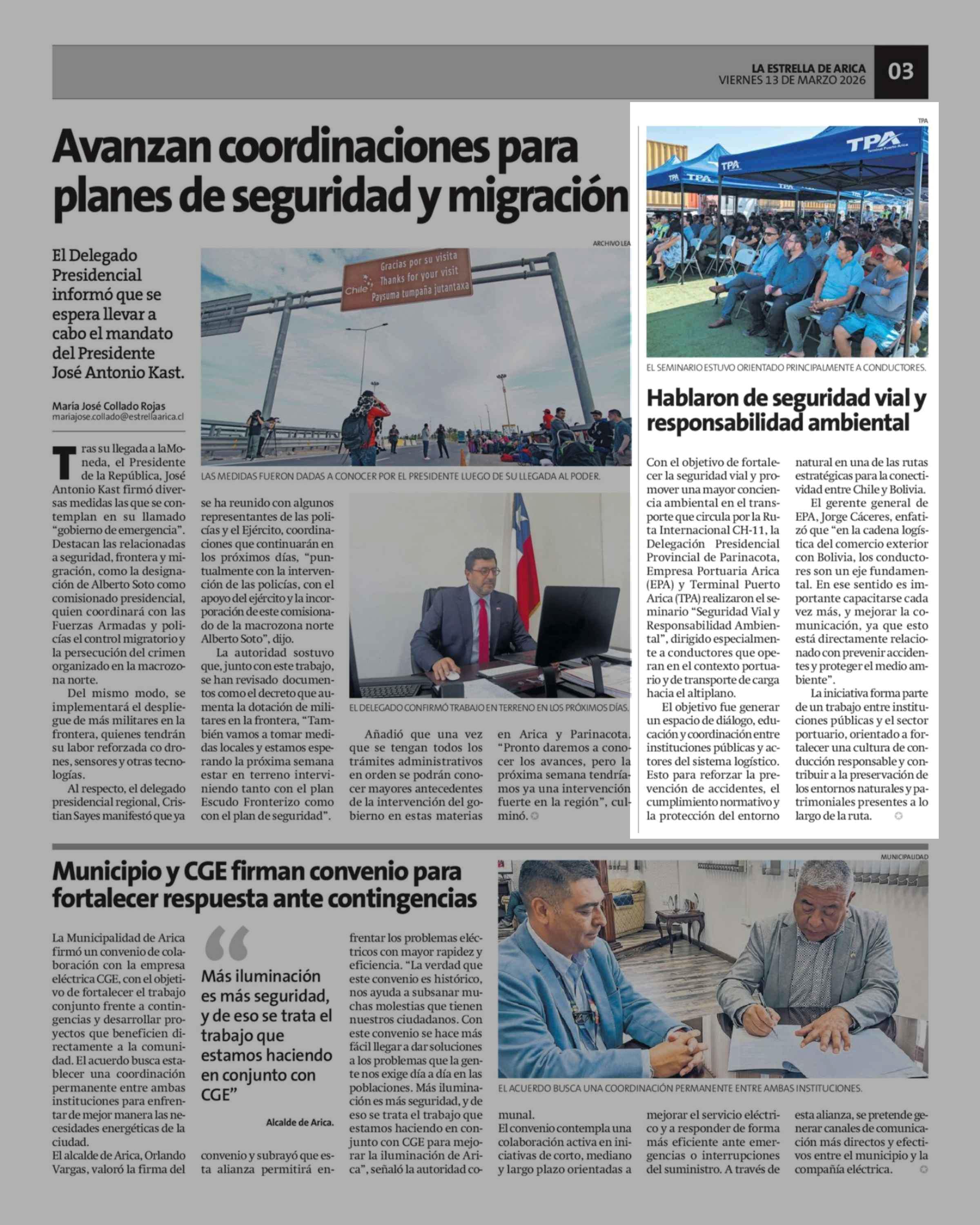 Hablaron de seguridad vial y responsabilidad ambiental 13-03-2026 La Estrella de Arica |