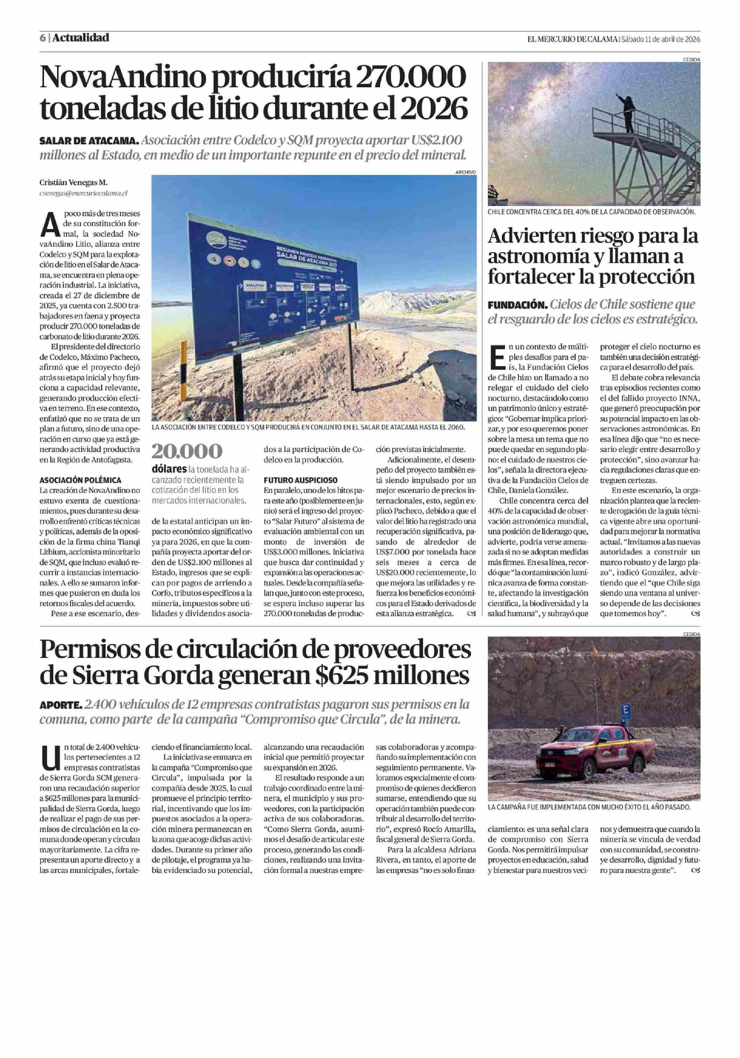 Advierten riesgo para la astronomía y llaman a fortalecer la protección 11-04-2026 El Mercurio de Calama |