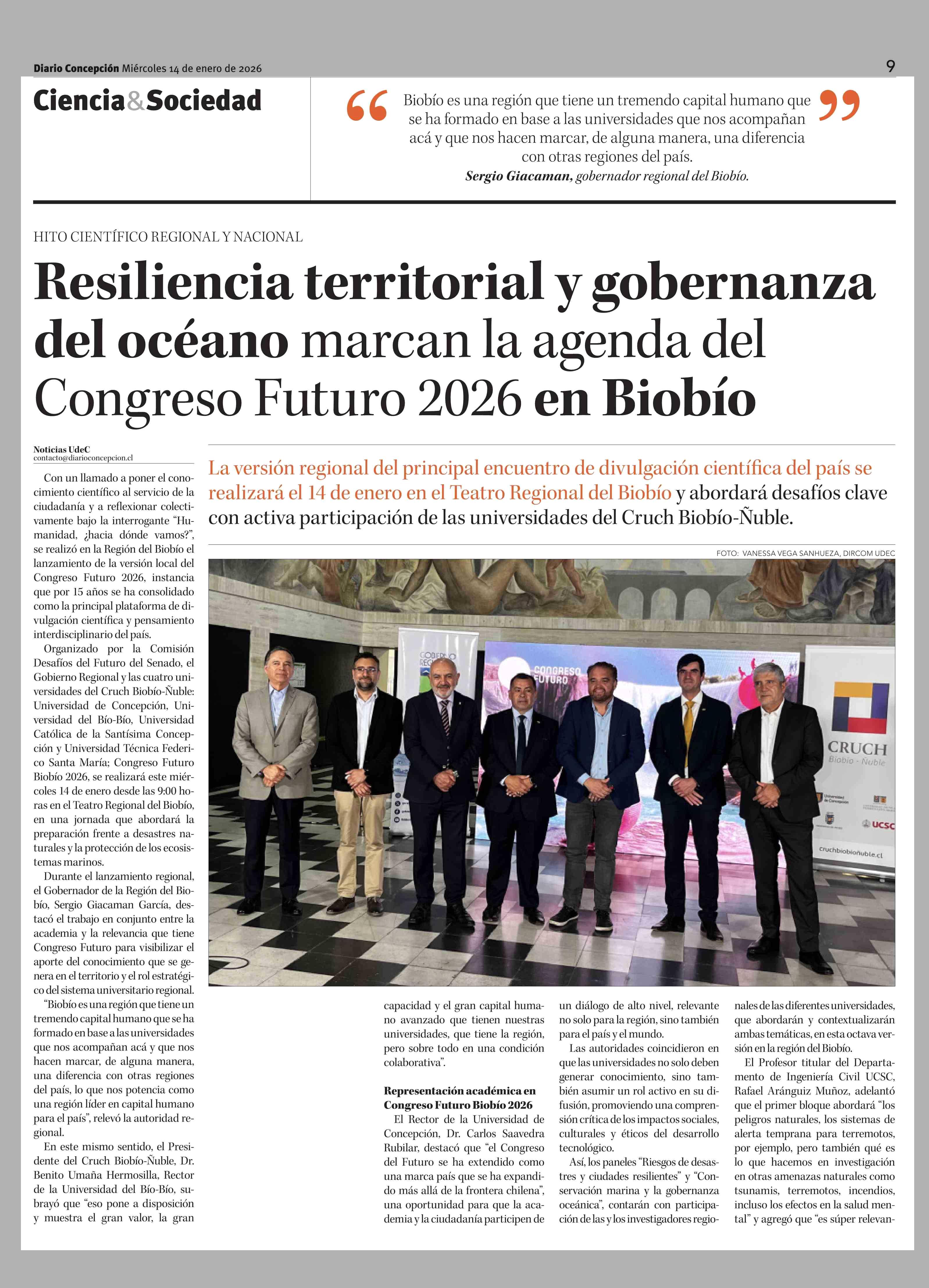 Título: Resiliencia territorial y gobernanza del océano marcan la agenda del Congreso Futuro 2026 en Biobio