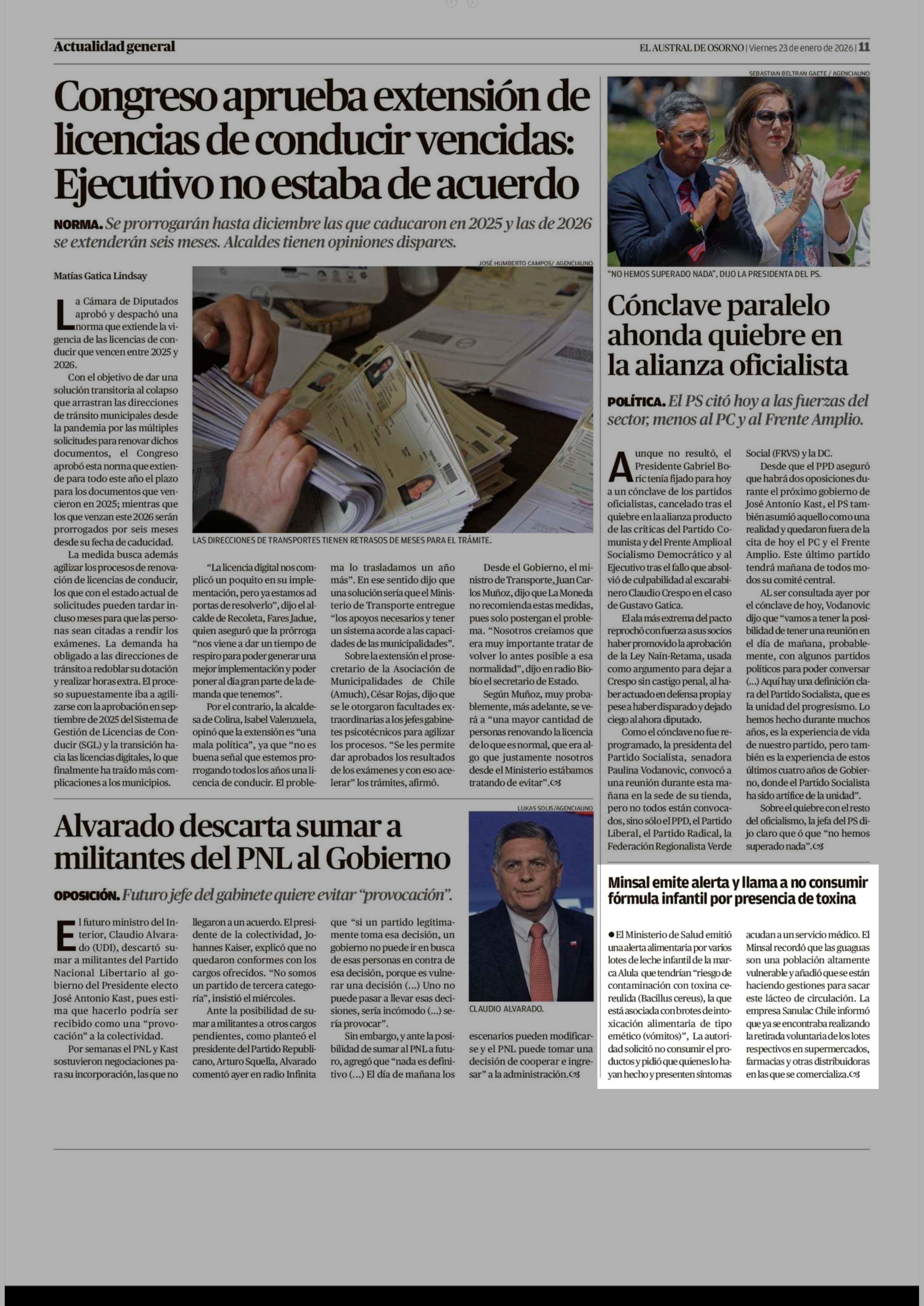 Minsal emite alerta y llama a no consumir fórmula infantil por presencia de toxina 23-01-2026 El Austral de Osorno |