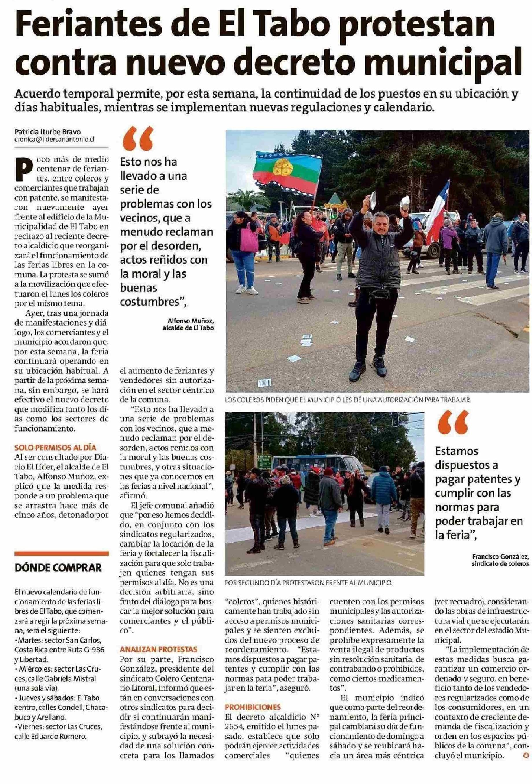 Feriantes de El Tabo protestan contra nuevo decreto municipal 04-06-2025 El Líder |