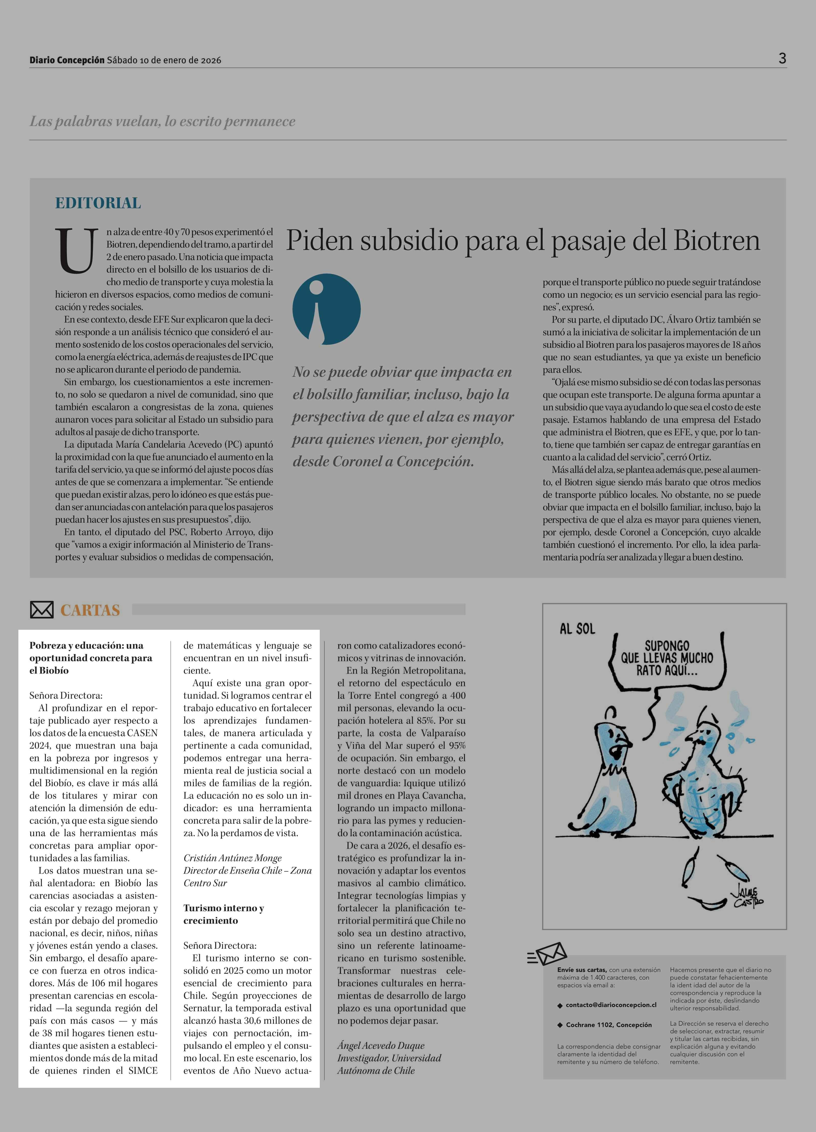 Cartas: Pobreza y educación: una oportunidad concreta para el Biobío 10-01-2026 Diario Concepción |