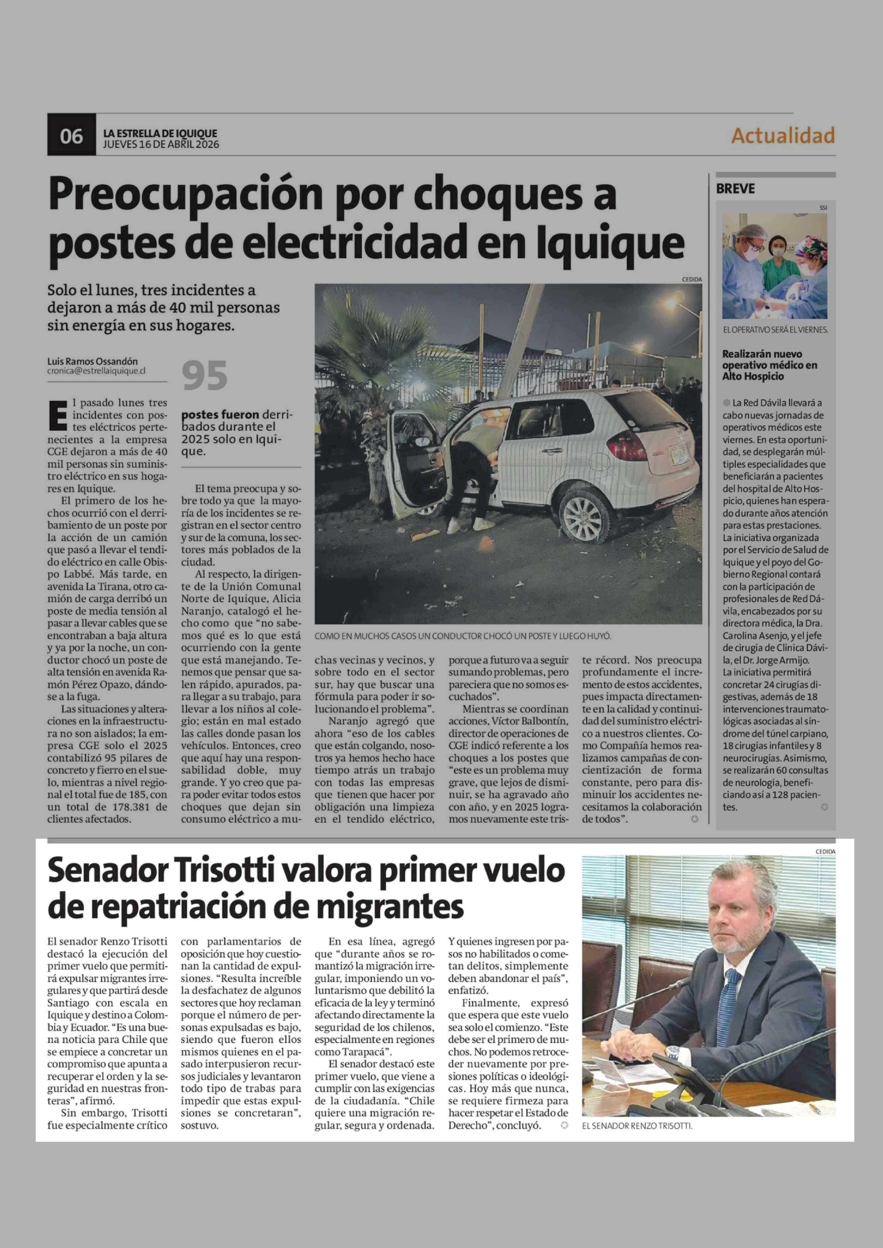 Senador Trisotti valora primer vuelo de repatriación de migrantes 16-04-2026 La Estrella de Iquique |