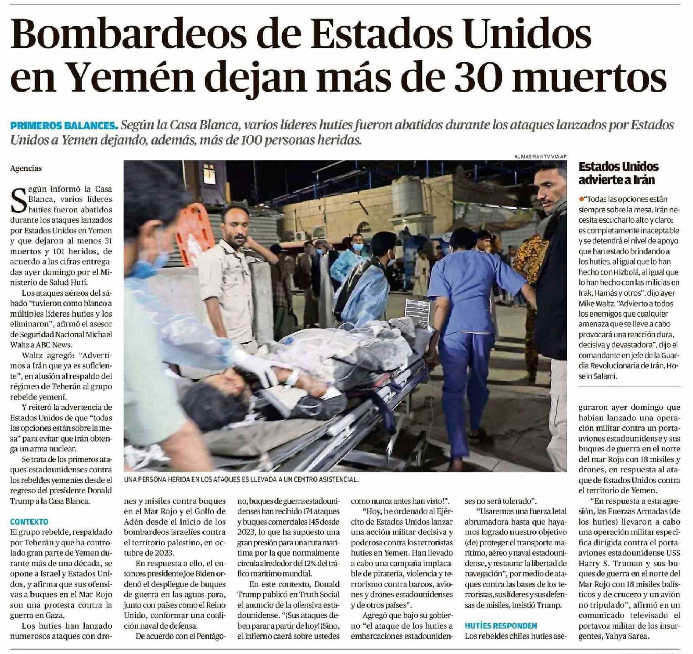 Bombardeos de Estados Unidos en Yemén dejan más de 30 muertos 17-03-2025 Crónica de Chillán |