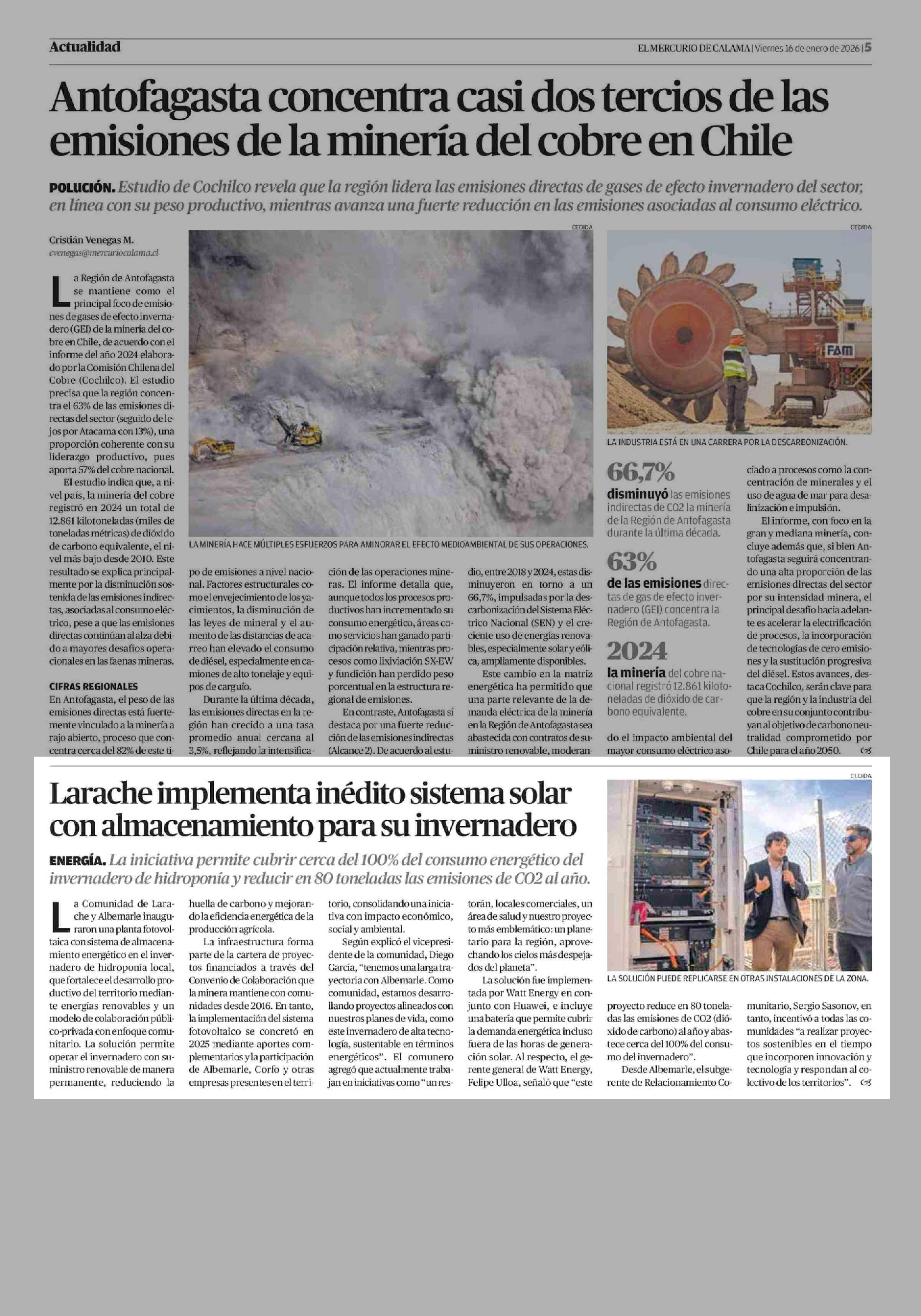 Larache implementa inédito sistema solar con almacenamiento para su invernadero 16-01-2026 El Mercurio de Calama |