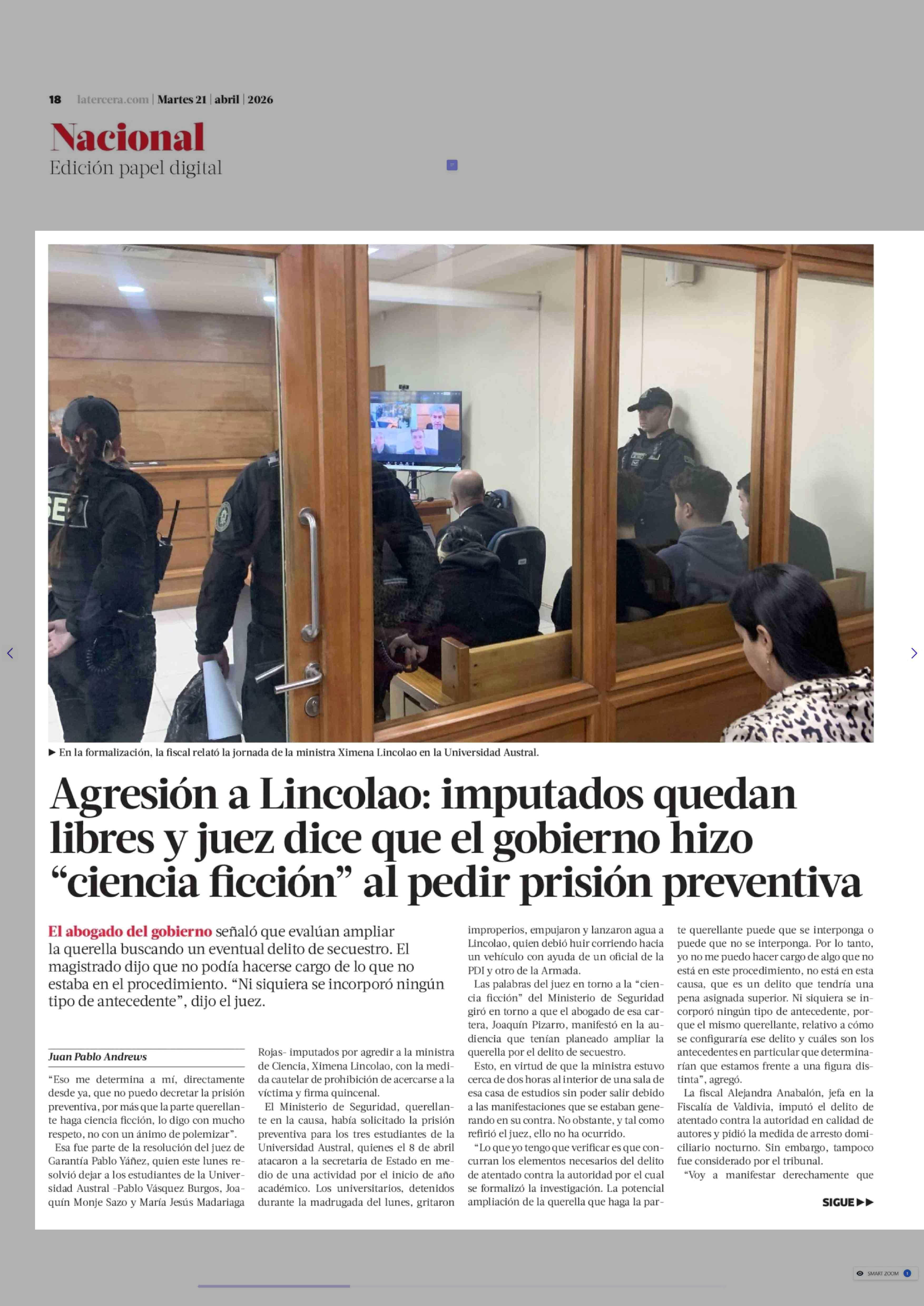 Título: Agresión a Lincolao: imputados quedan libres y juez dice que el gobierno hizo "ciencia ficción" al pedir prisión preventiva