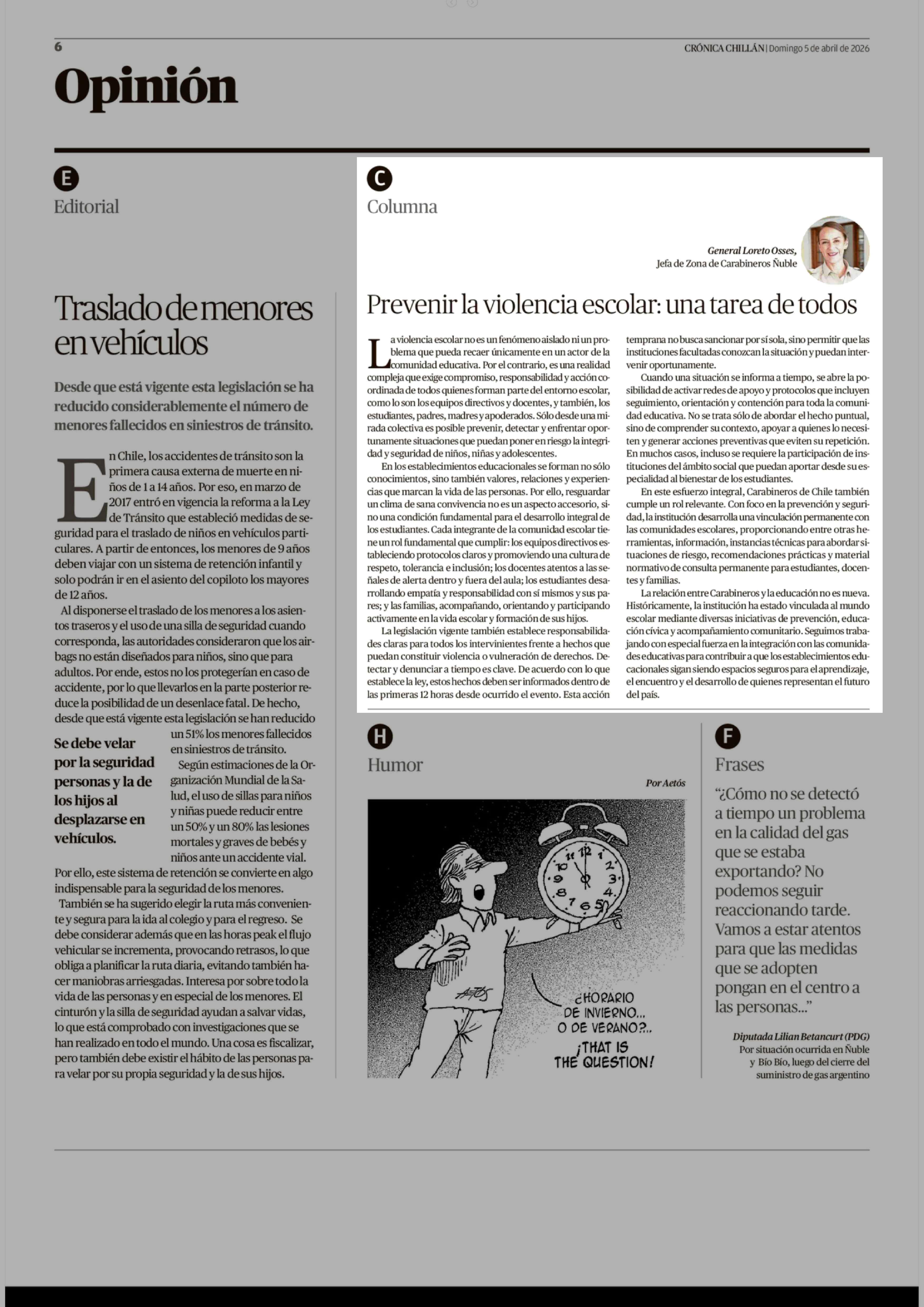Fecha: 05-04-2026 Sector: Columnas de Opinión Región: Región del Ñuble