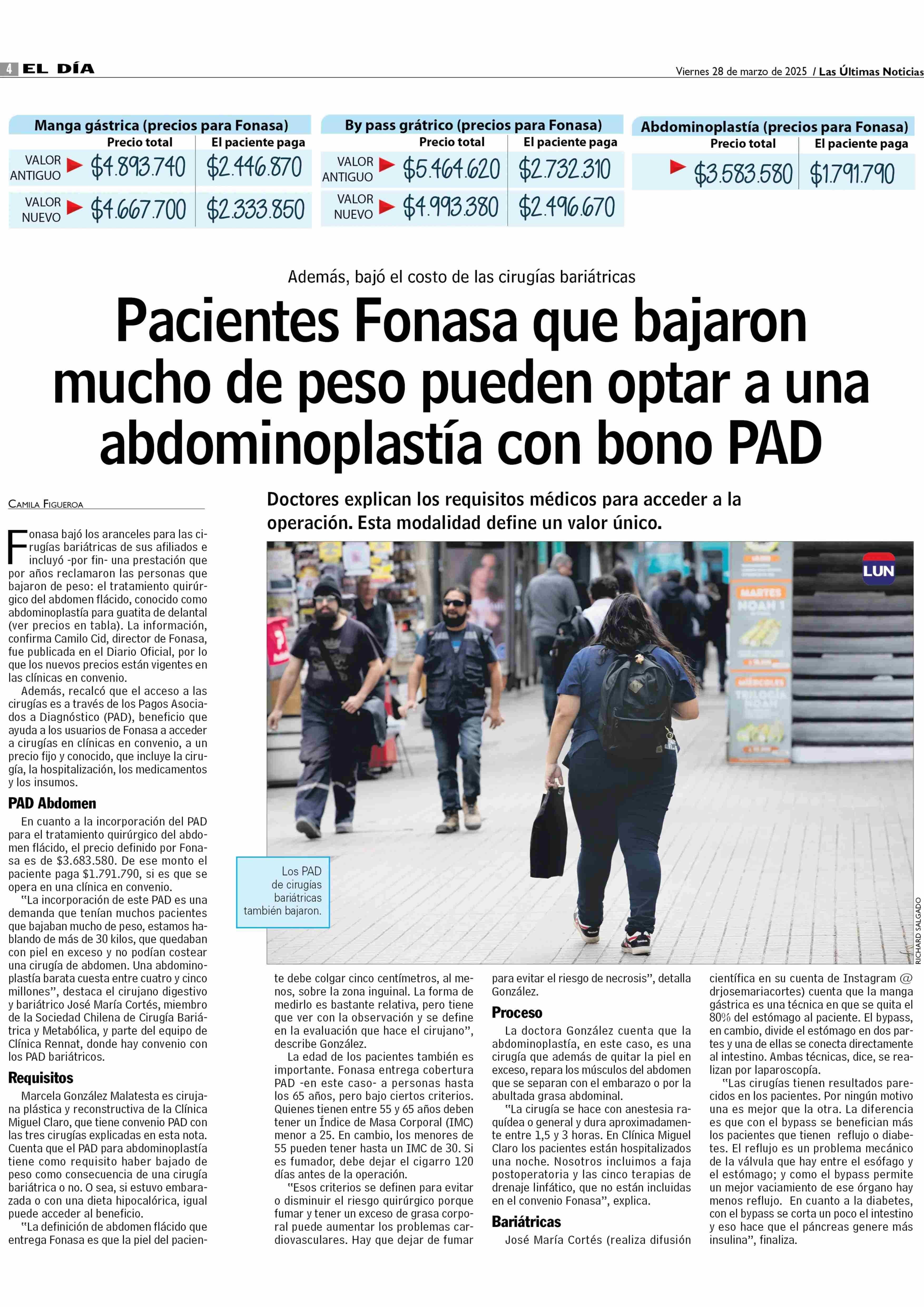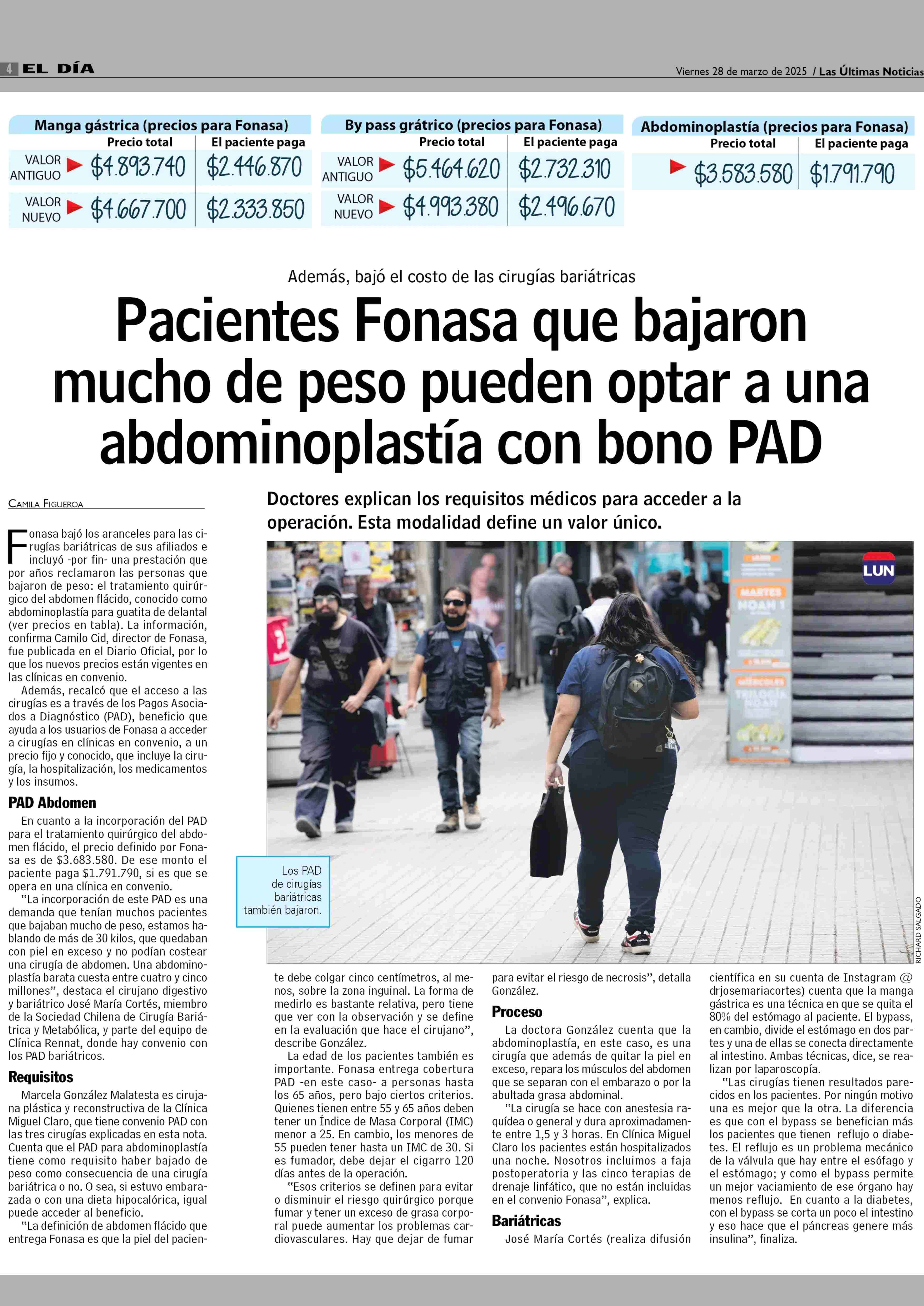 Pacientes Fonasa que bajaron mucho de peso pueden optar a una abdominoplastía con bono PAD 28-03-2025 Las Últimas Noticias |