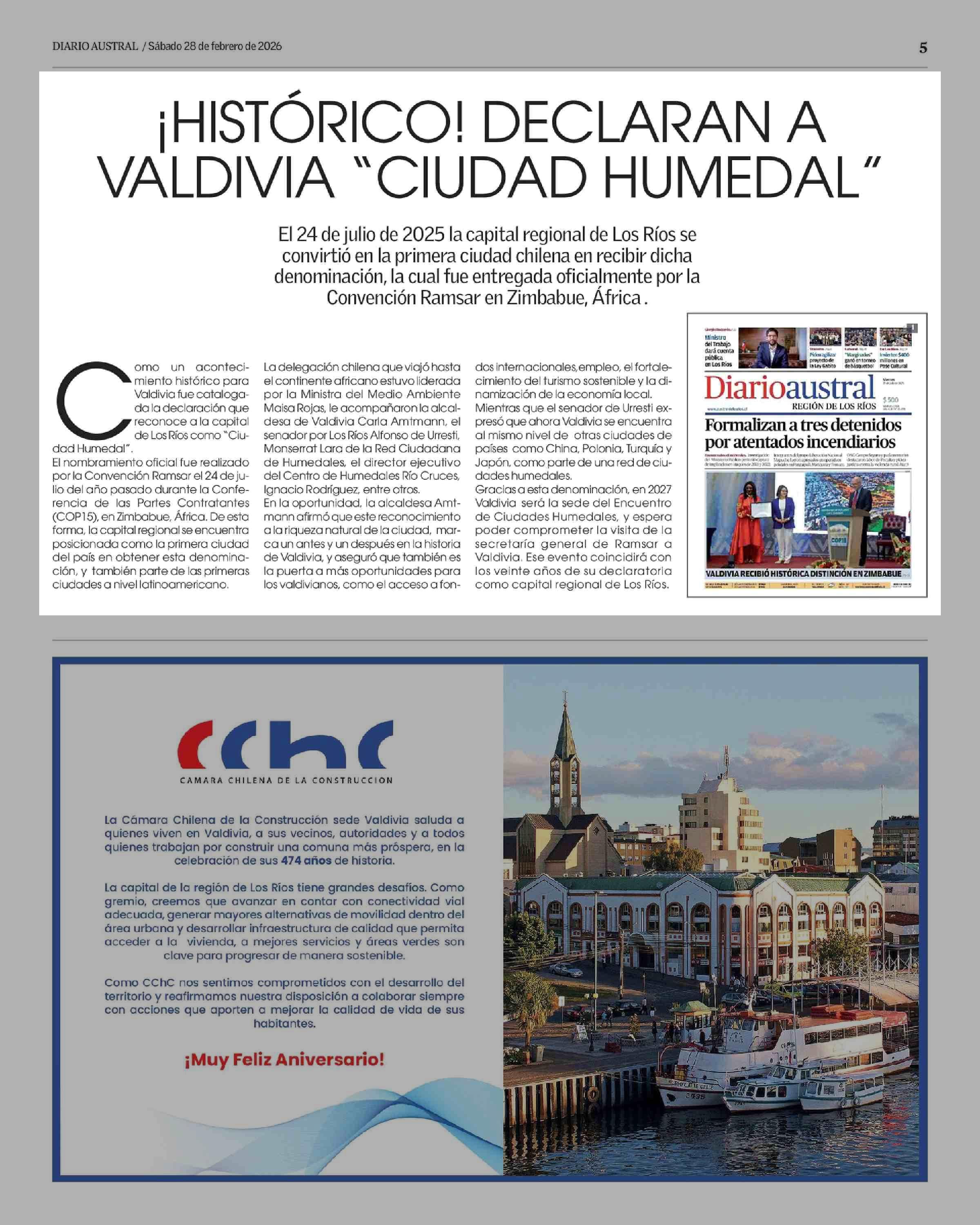 ¡HISTÓRICO! DECLARAN A VALDIVIA "CIUDAD HUMEDAL”