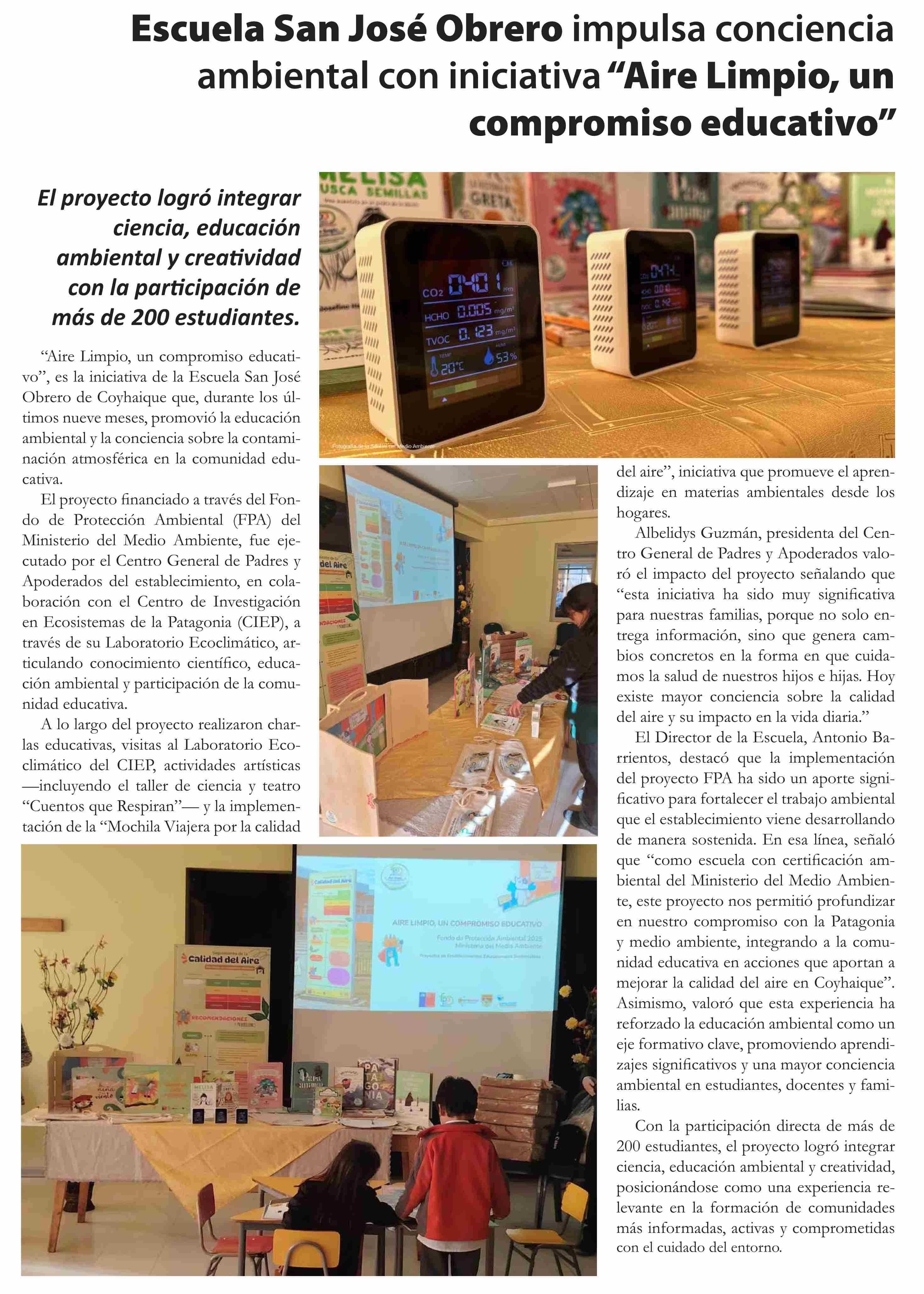 | Título: | Escuela San José Obrero impulsa conciencia ambiental con iniciativa “Aire Limpio, un compromiso educativo” |