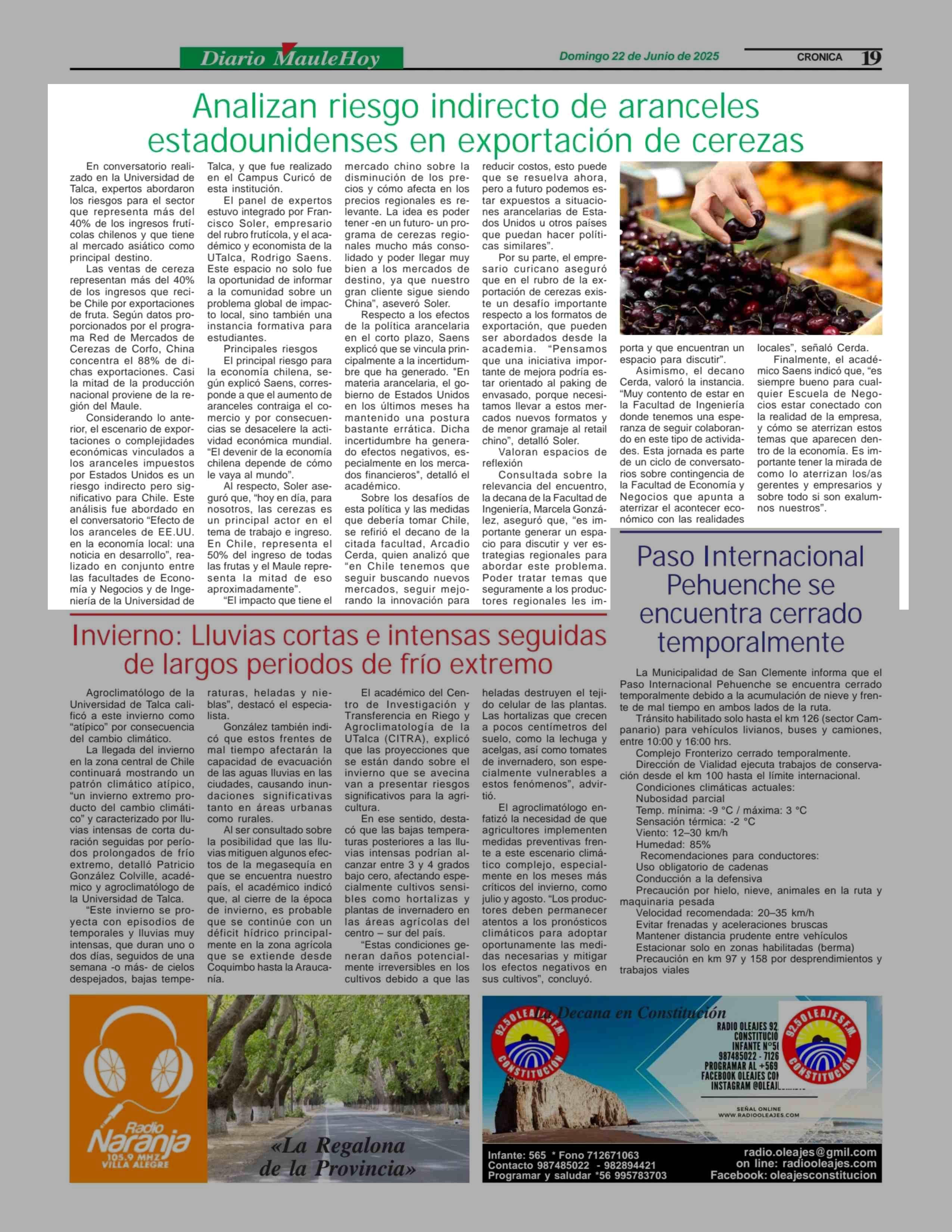 | Fuente: | Maule Hoy (Maule Hoy) | Página(s): | 19 |