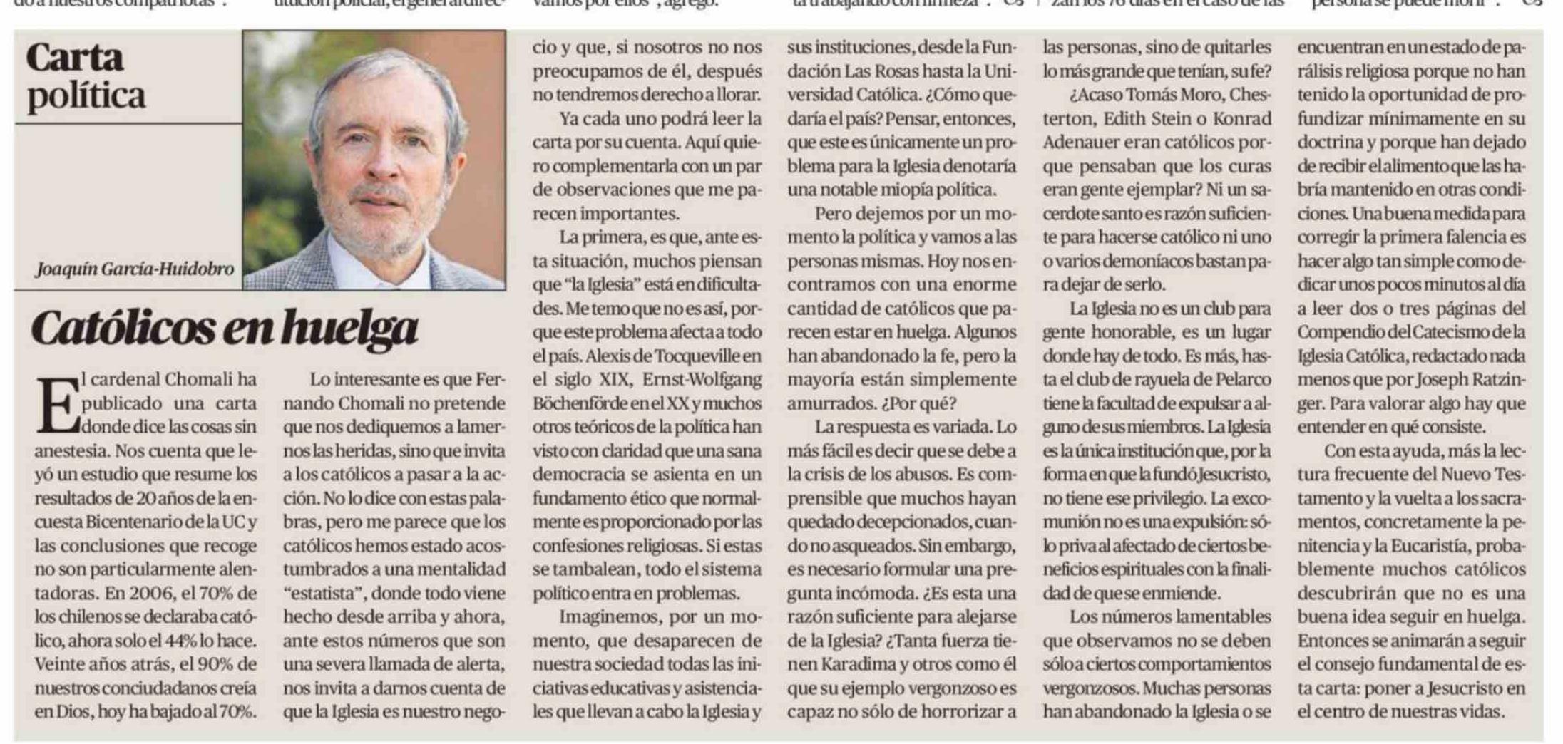 Columnas de Opinión: Católicos en huelga 21-03-2026 El Diario de Atacama |