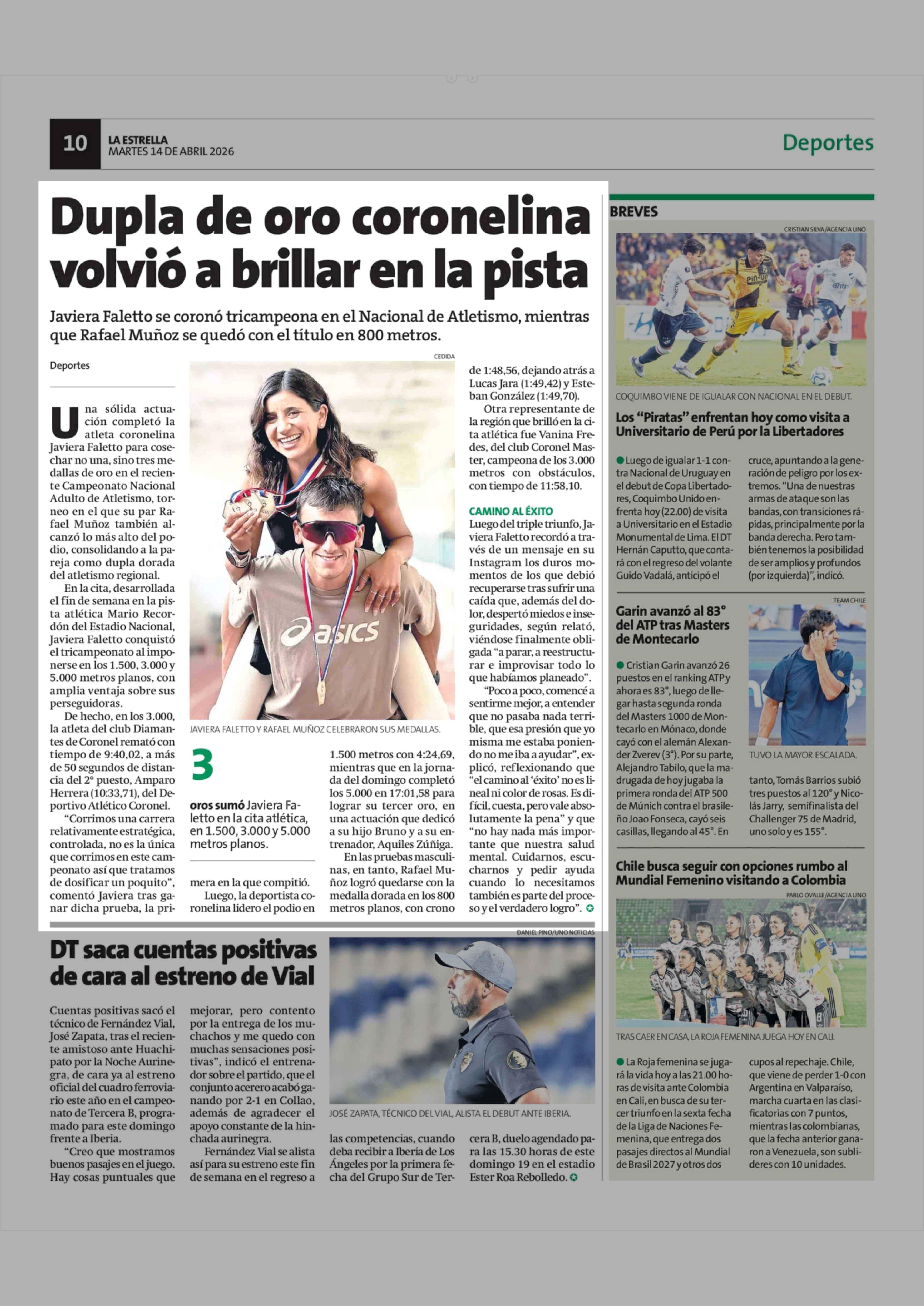 Dupla de oro coronelina volvió a brillar en la pista 14-04-2026 La Estrella de Concepción |