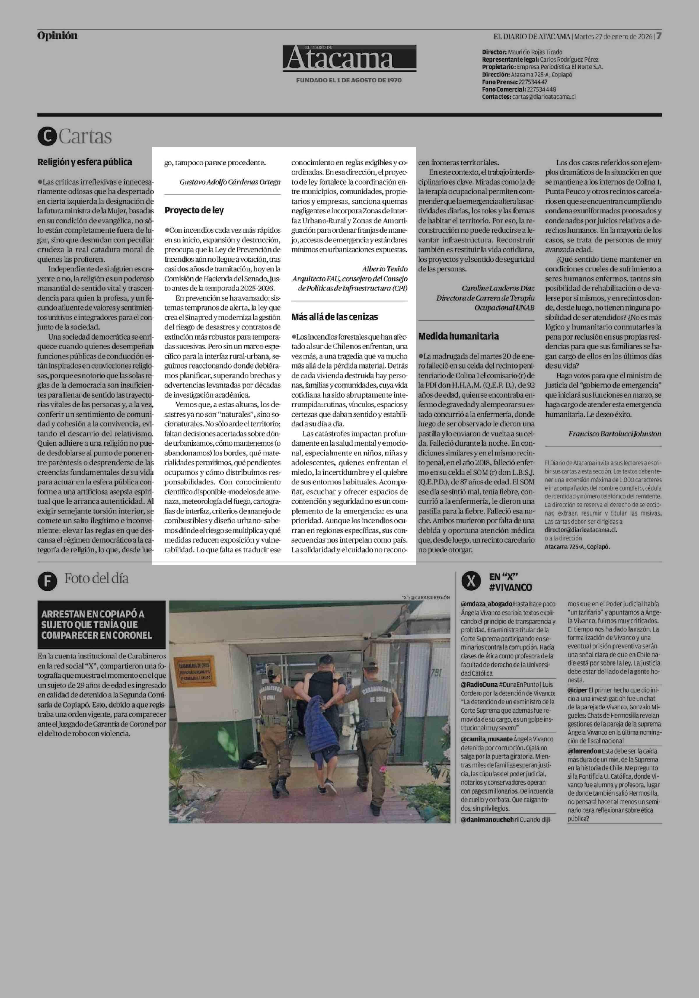 Cartas: Proyecto de ley 27-01-2026 El Diario de Atacama |