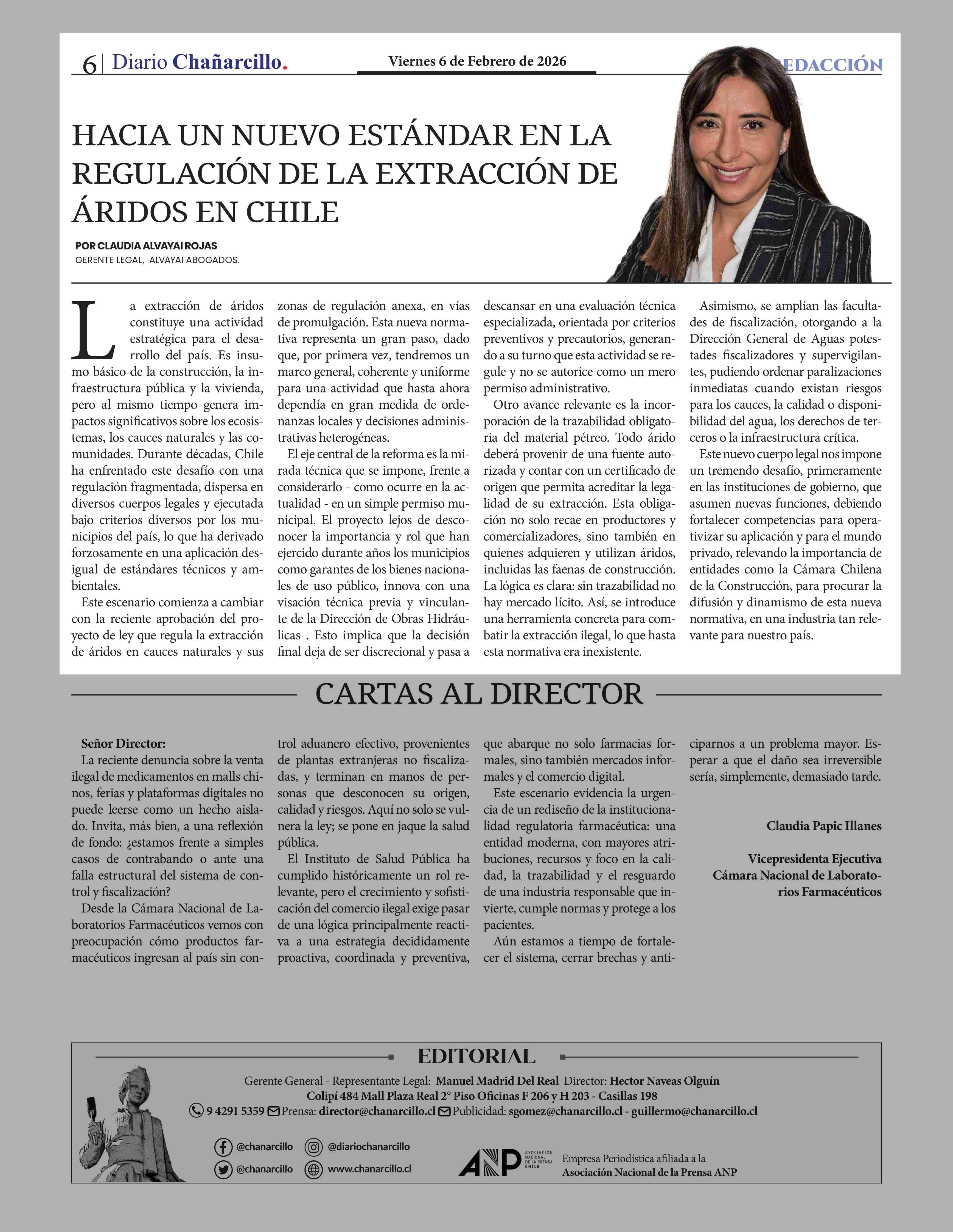 Columnas de Opinión: HACIA UN NUEVO ESTÁNDAR EN LA REGULACIÓN DE LA EXTRACCIÓN DE ÁRIDOS EN CHILE 06-02-2026 Diario Chañarcillo |