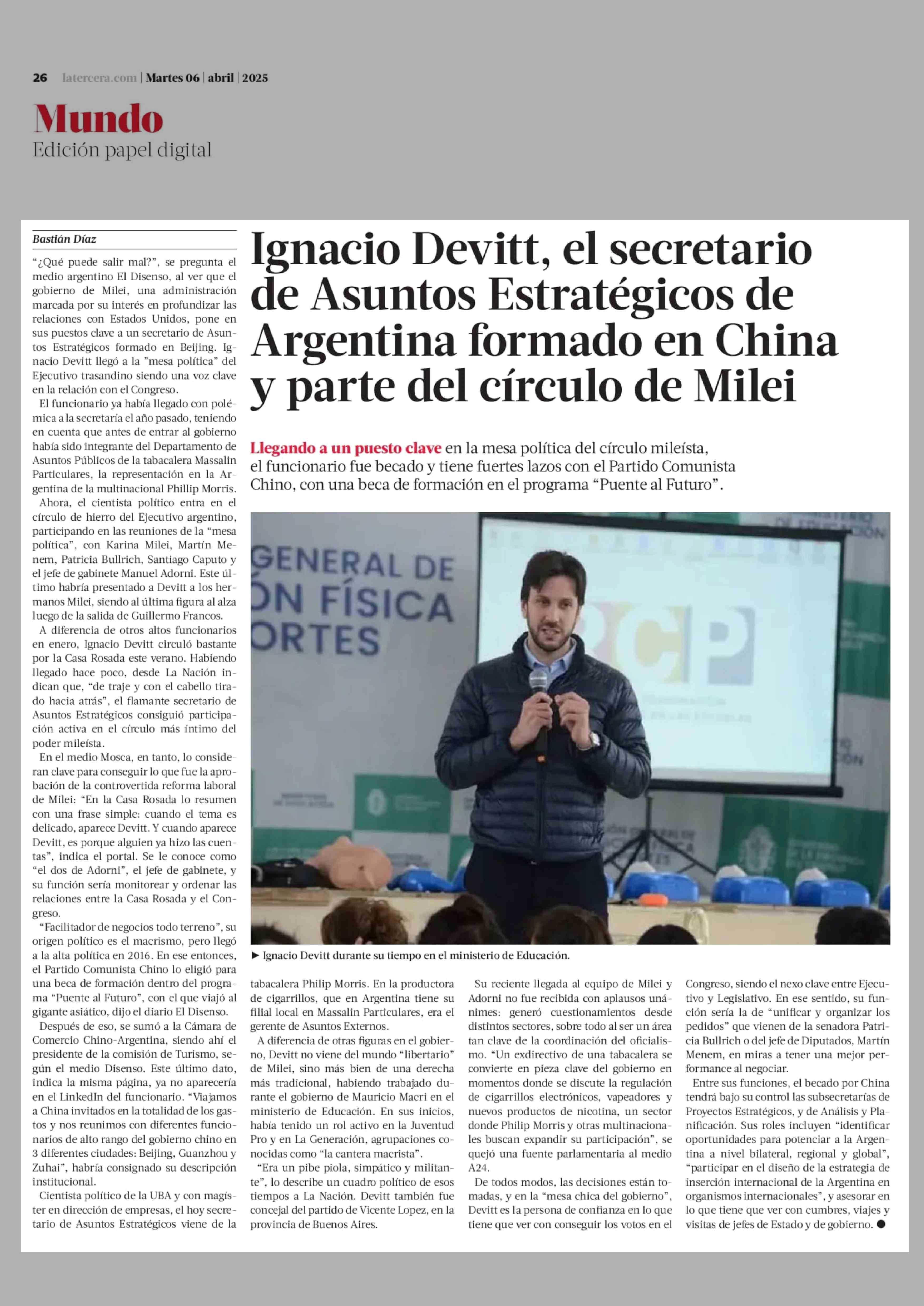 Título: Ignacio Devitt, el secretario de Asuntos Estratégicos de Argentina formado en China y parte del círculo de Milei