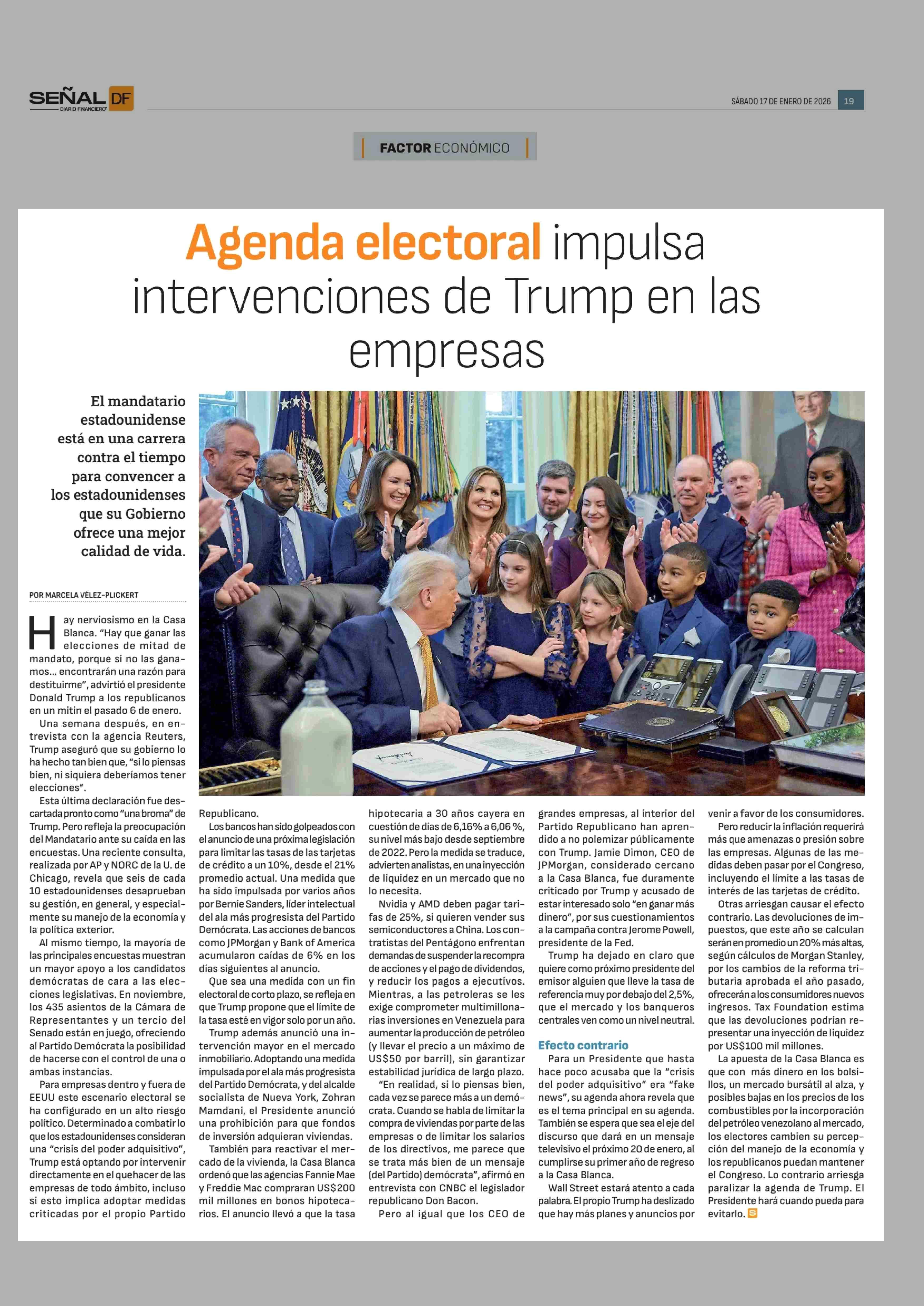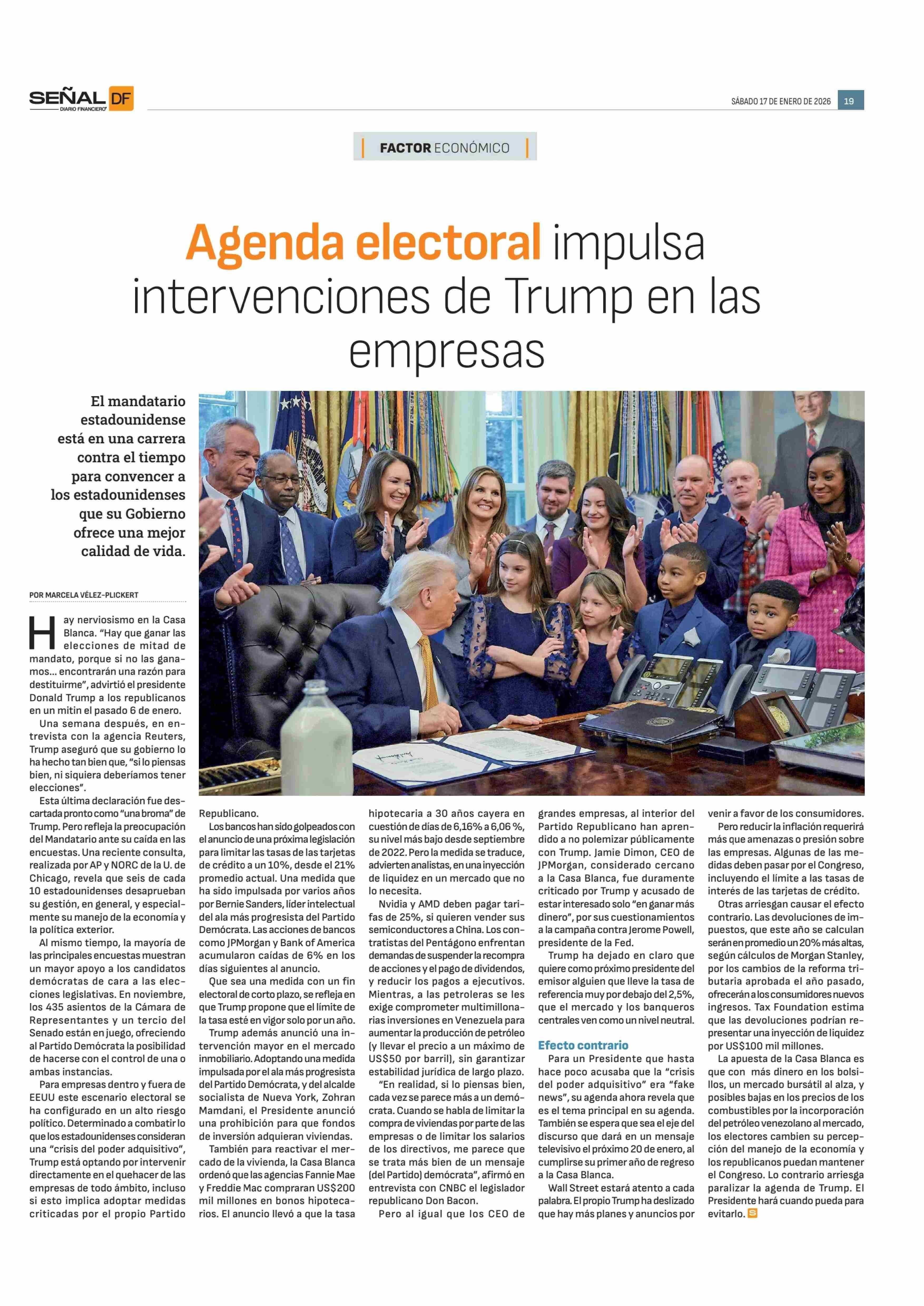 Agenda electoral impulsa intervenciones de Trump en las empresas 17-01-2026 Diario Financiero |
