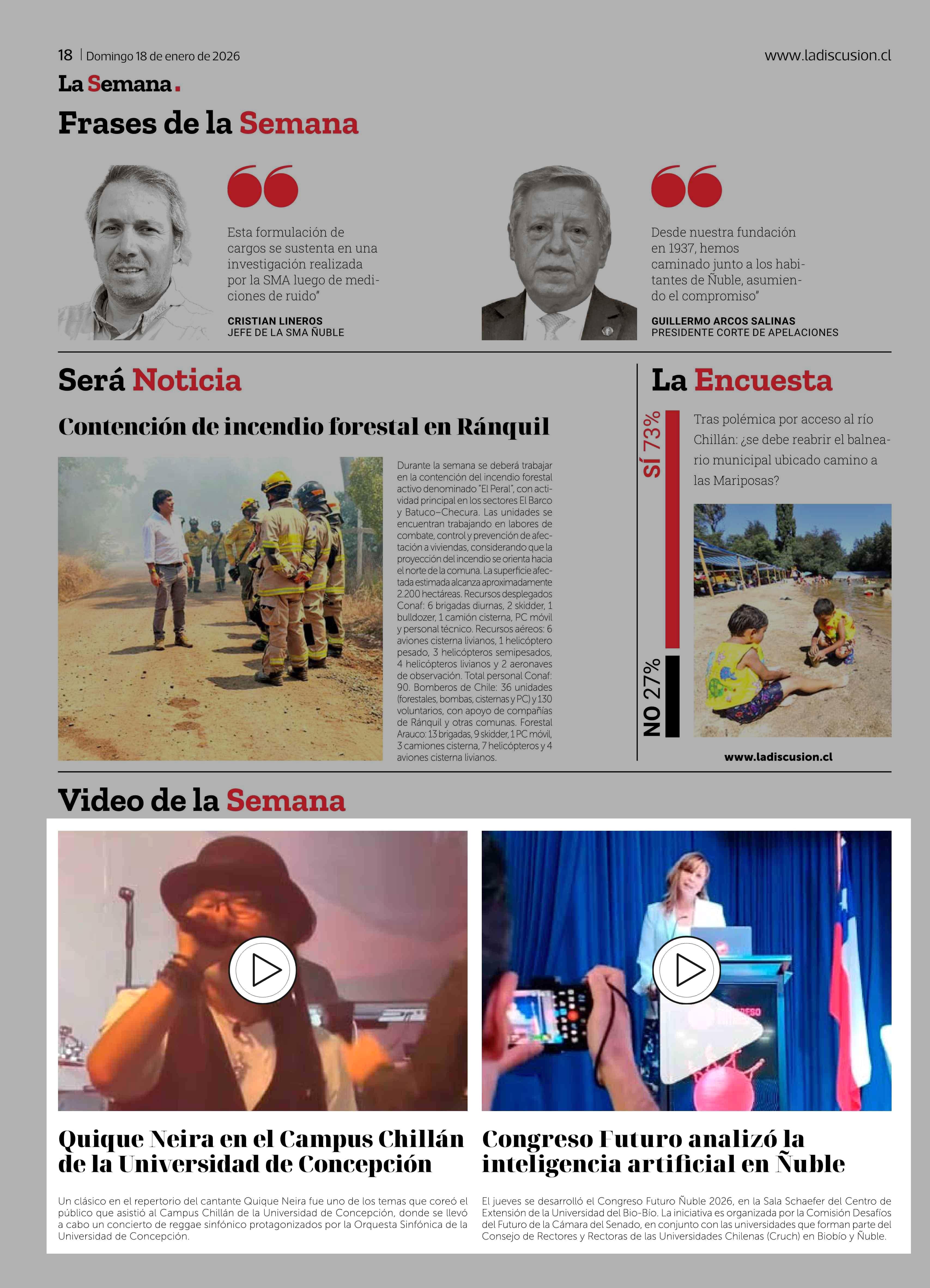 Fecha: 18-01-2026 Sector: Noticia general Región: Región del Ñuble