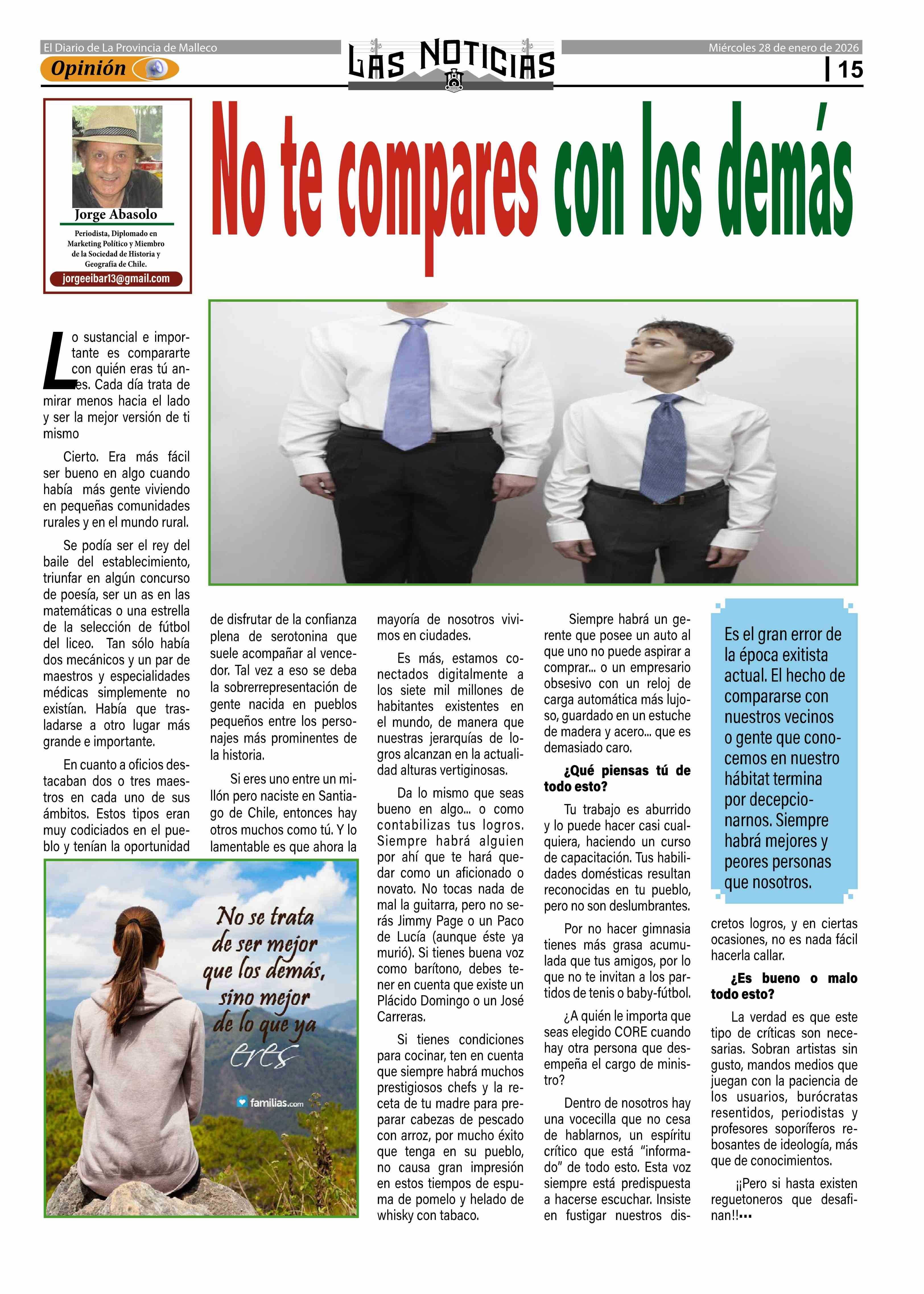 Título: Columnas de Opinión: No te compares con los demás