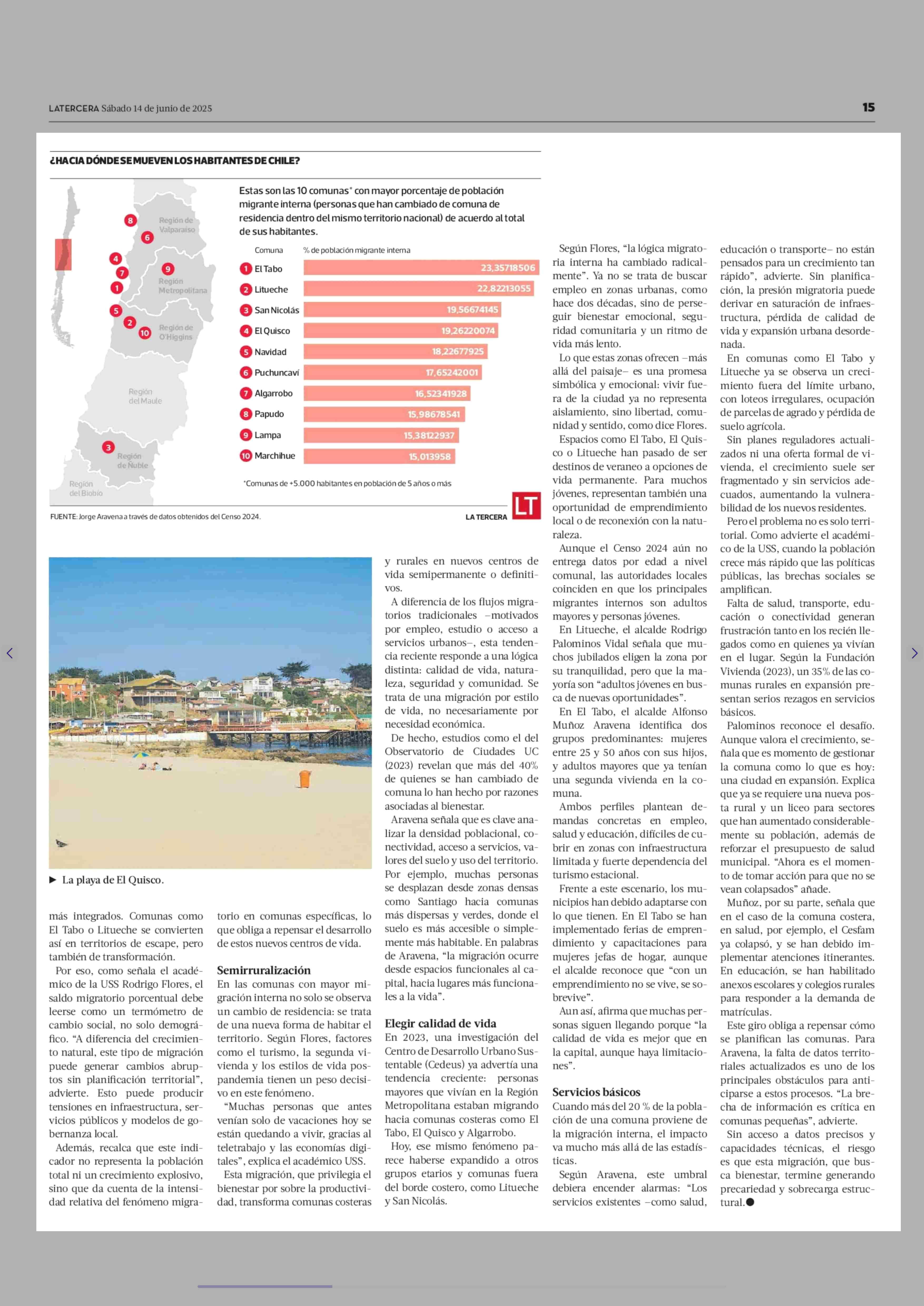 ¿A dónde están escapando los chilenos? Las 10 comunas con mayor migración interna 14-06-2025 La Tercera |