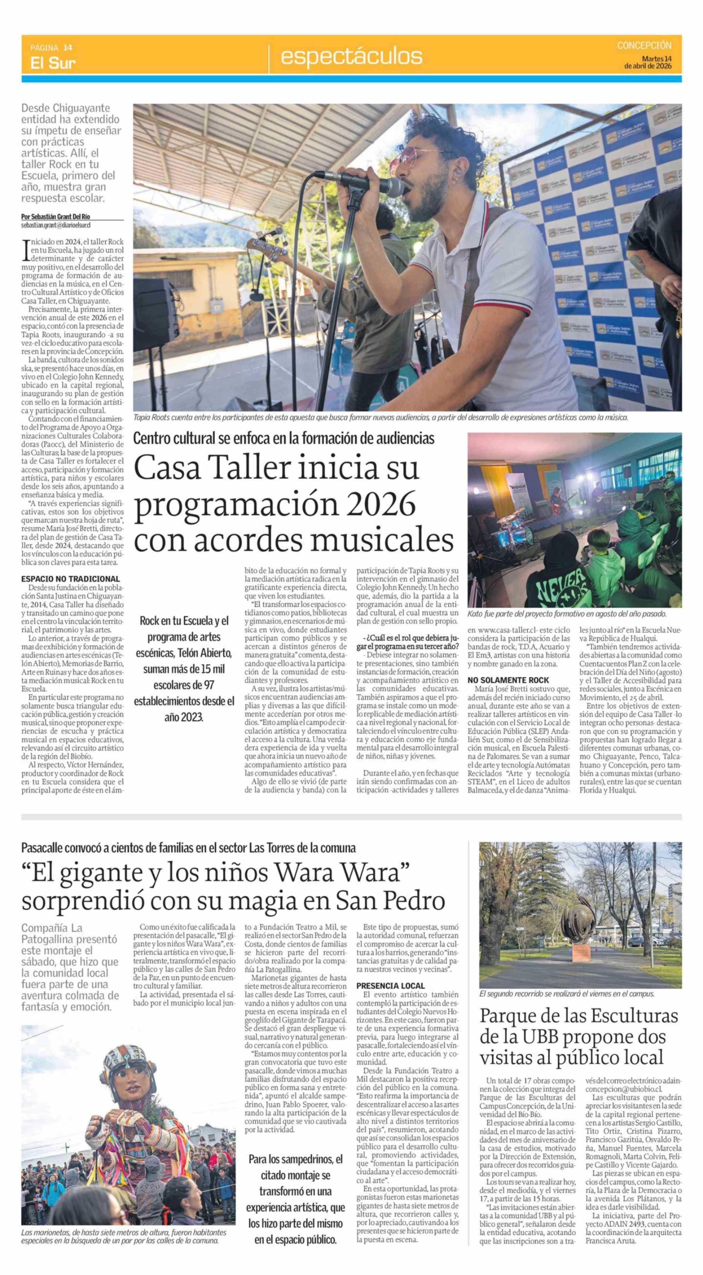 Casa Taller inicia su programación 2026 con acordes musicales 14-04-2026 El Sur |
