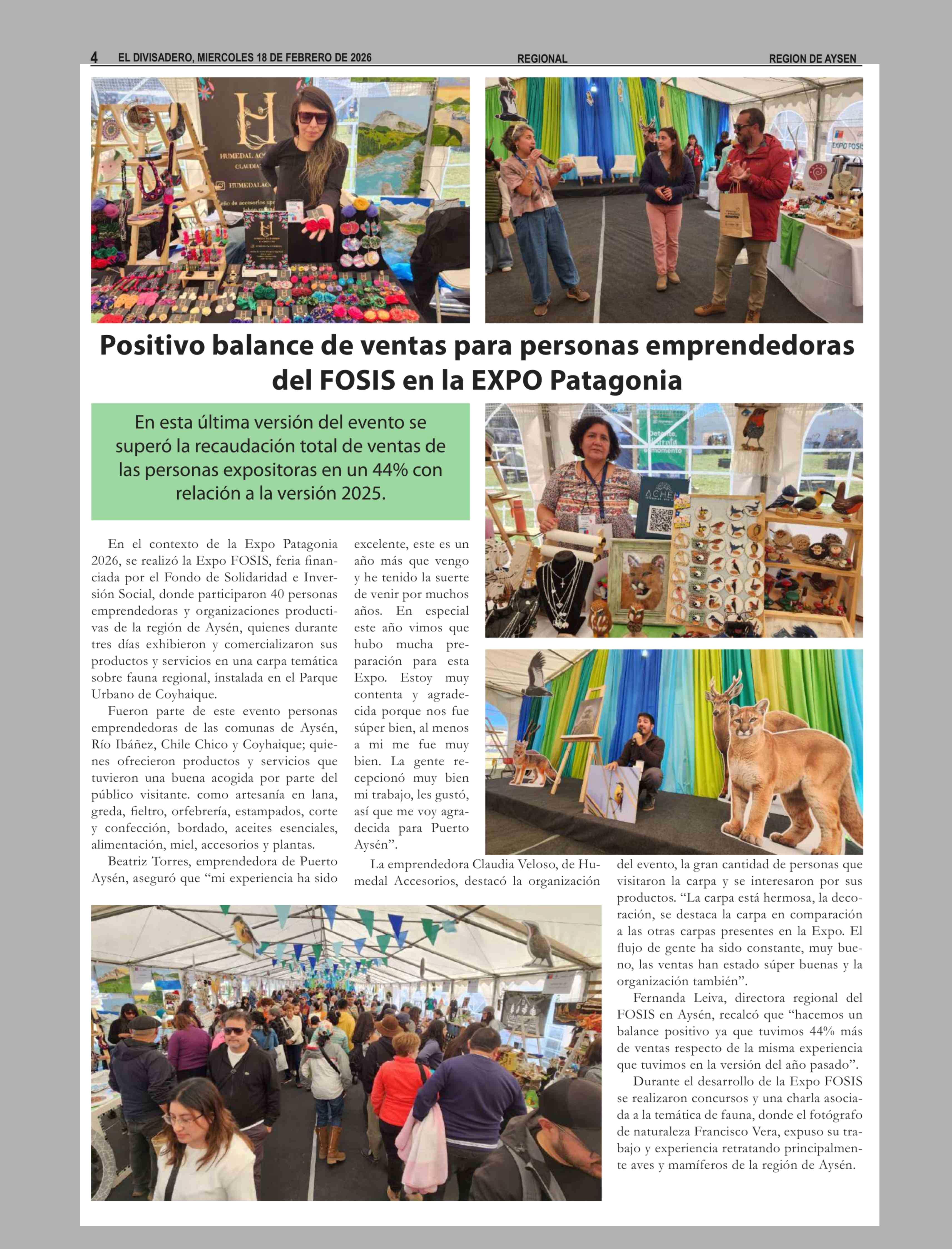 Fecha: 18-02-2026 Sector: Noticia general Región: Región Aysén del General Carlos Ibáñez del Campo