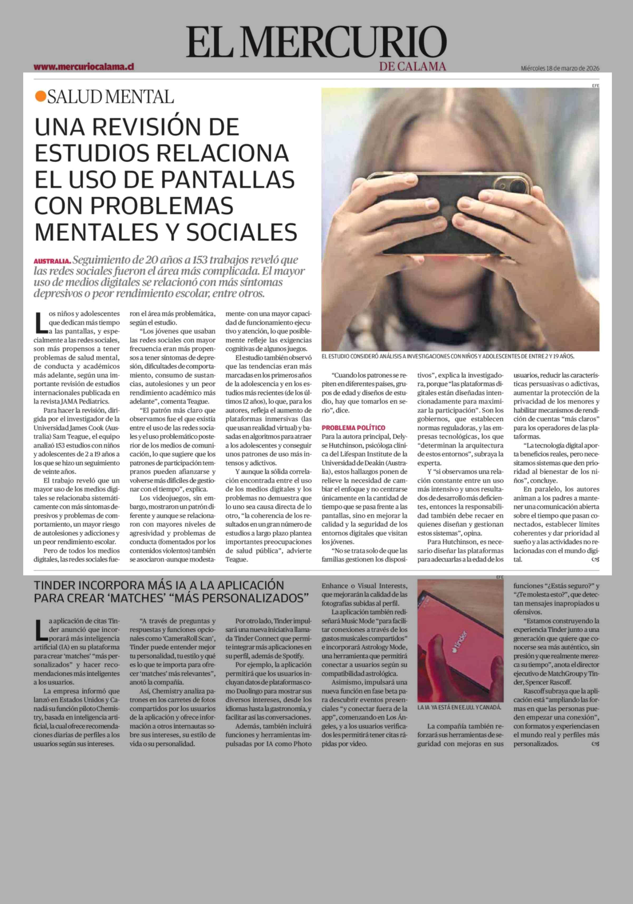 Título: UNA REVISIÓN DE ESTUDIOS RELACIONA EL USO DE PANTALLAS CON PROBLEMAS MENTALES Y SOCIALES