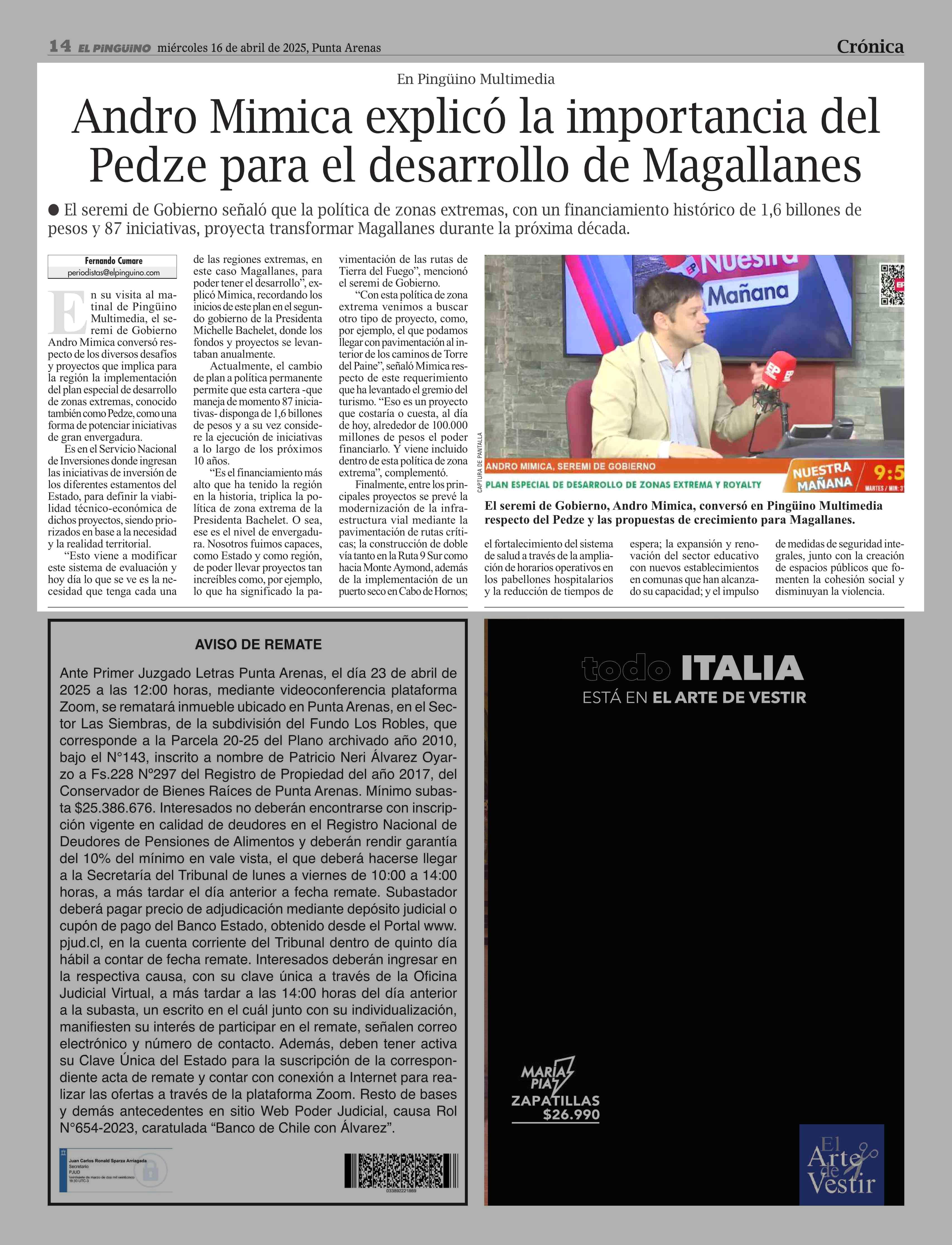 Andro Mimica explicó la importancia del Pedze para el desarrollo de Magallanes 16-04-2025 El Pingüino |