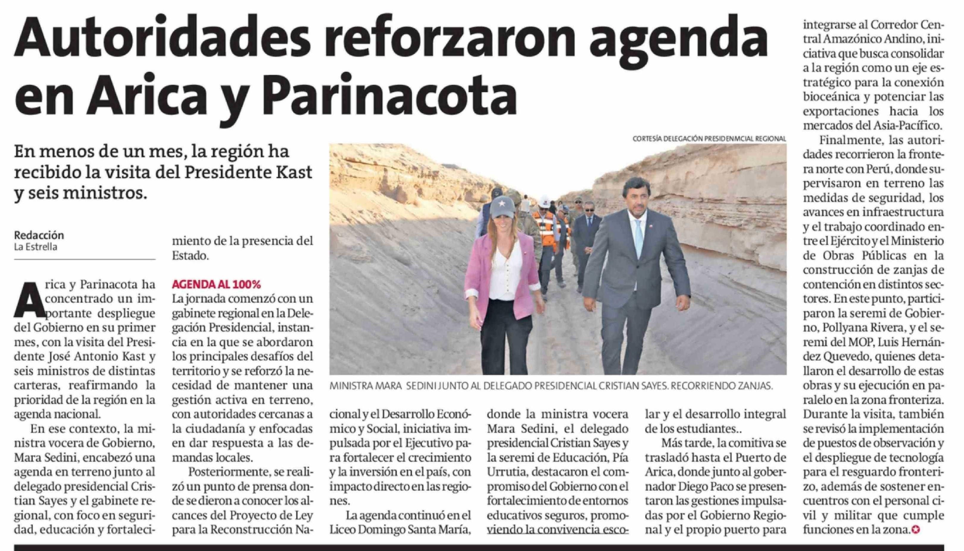 Autoridades reforzaron agenda en Arica y Parinacota 19-04-2026 La Estrella de Arica |