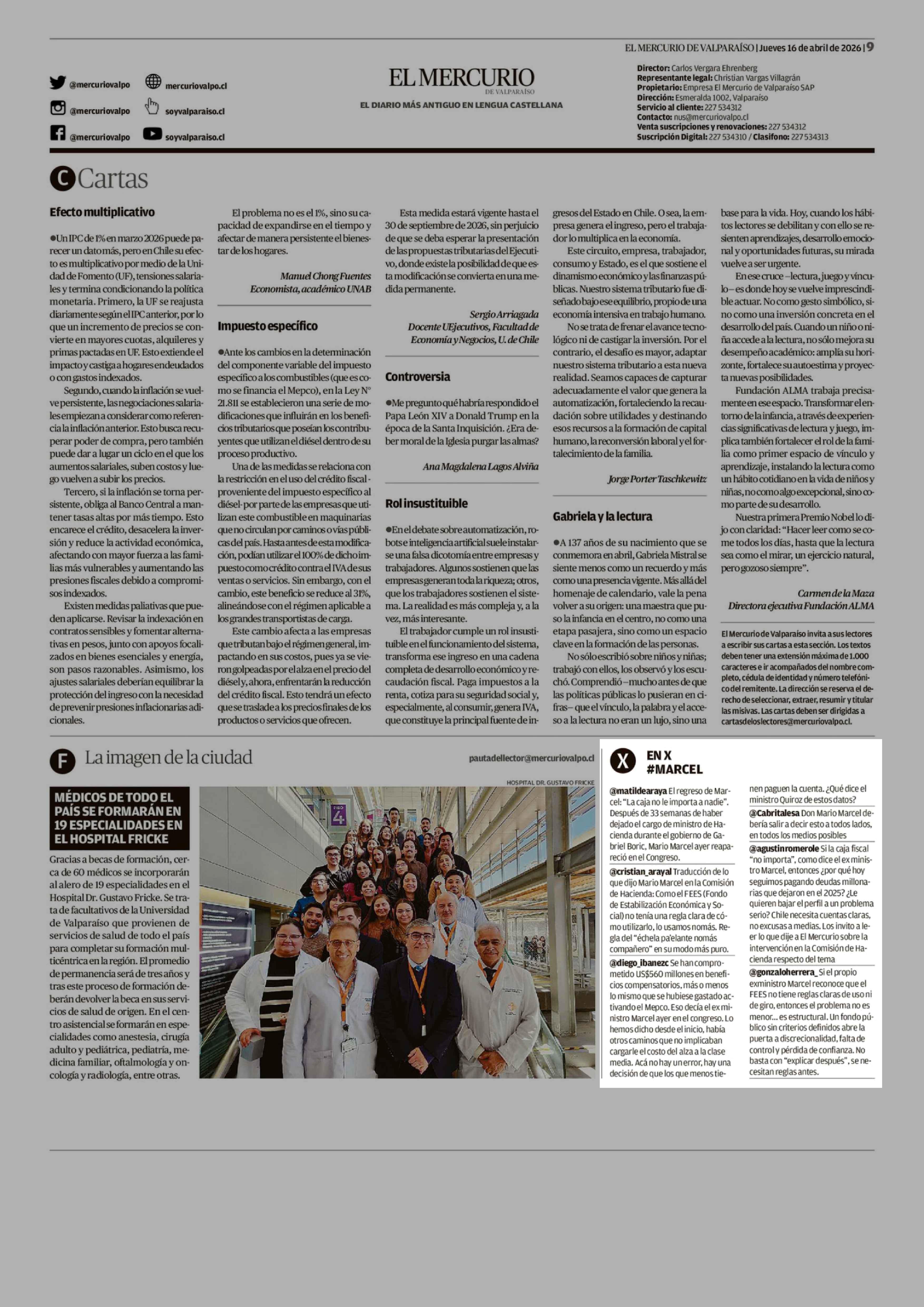 EN X #MARCEL 16-04-2026 El Mercurio de Valparaíso |