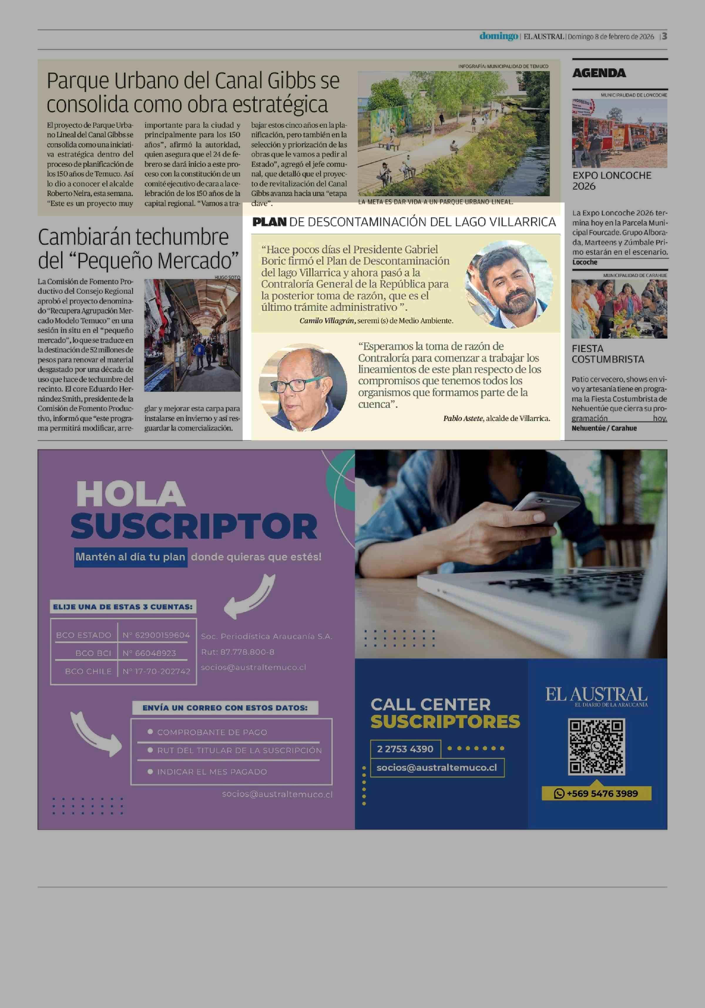 PLAN DE DESCONTAMINACIÓN DEL LAGO VILLARRICA 08-02-2026 El Austral de la Araucanía |
