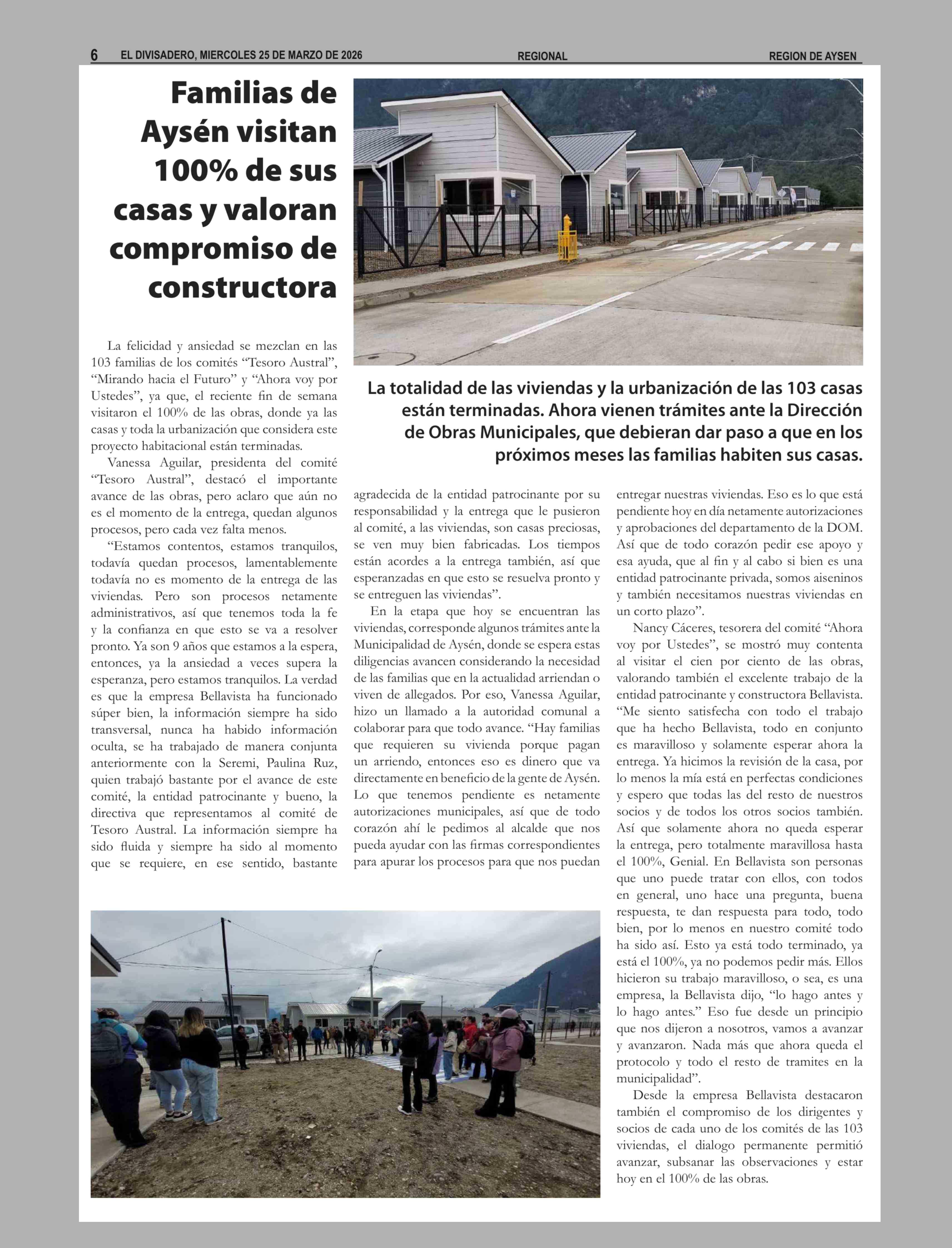 Título: Familias de Aysén visitan 100% de sus casas y valoran compromiso de constructora
