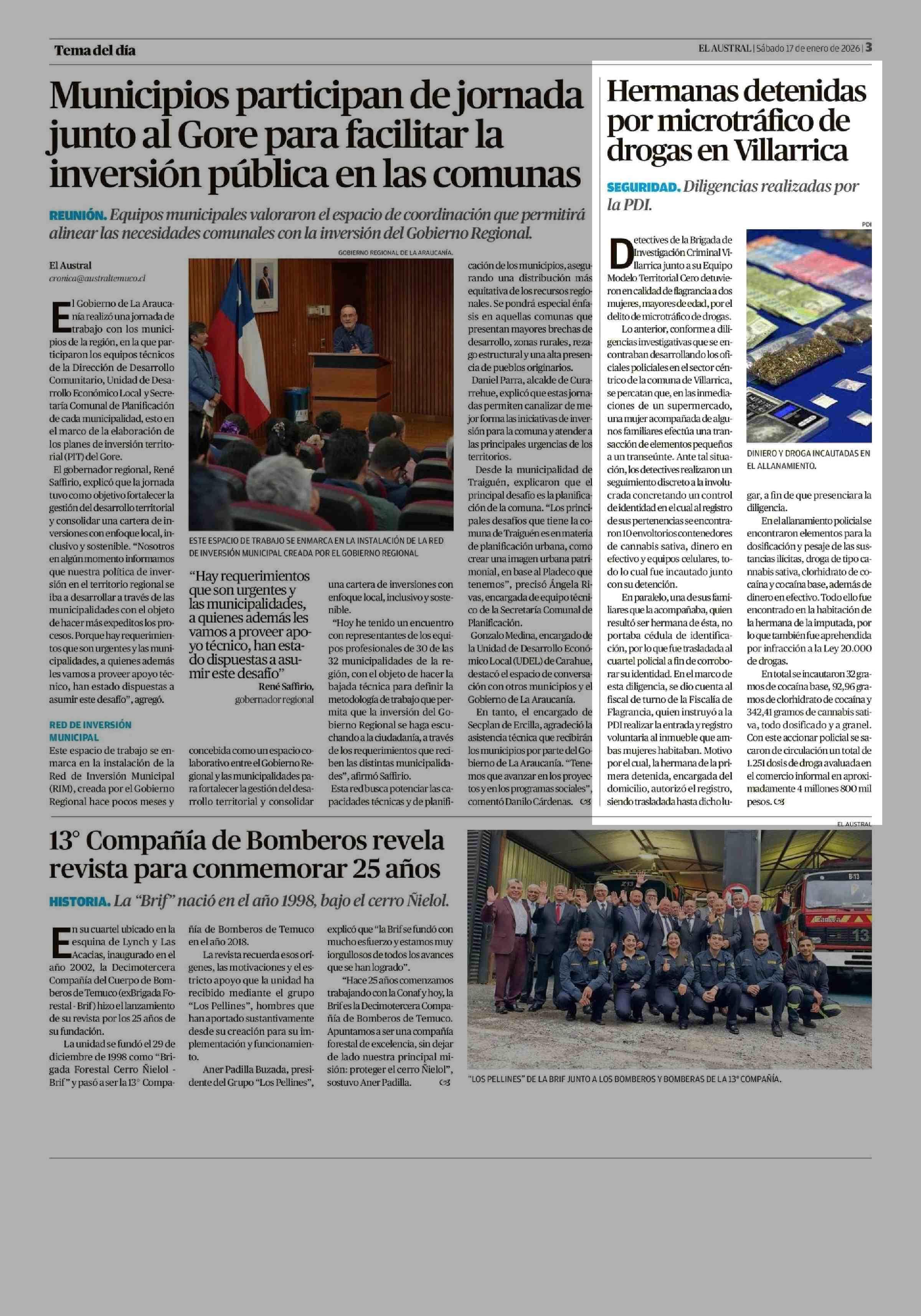 Hermanas detenidas por microtráfico de drogas en Villarrica 17-01-2026 El Austral de la Araucanía |