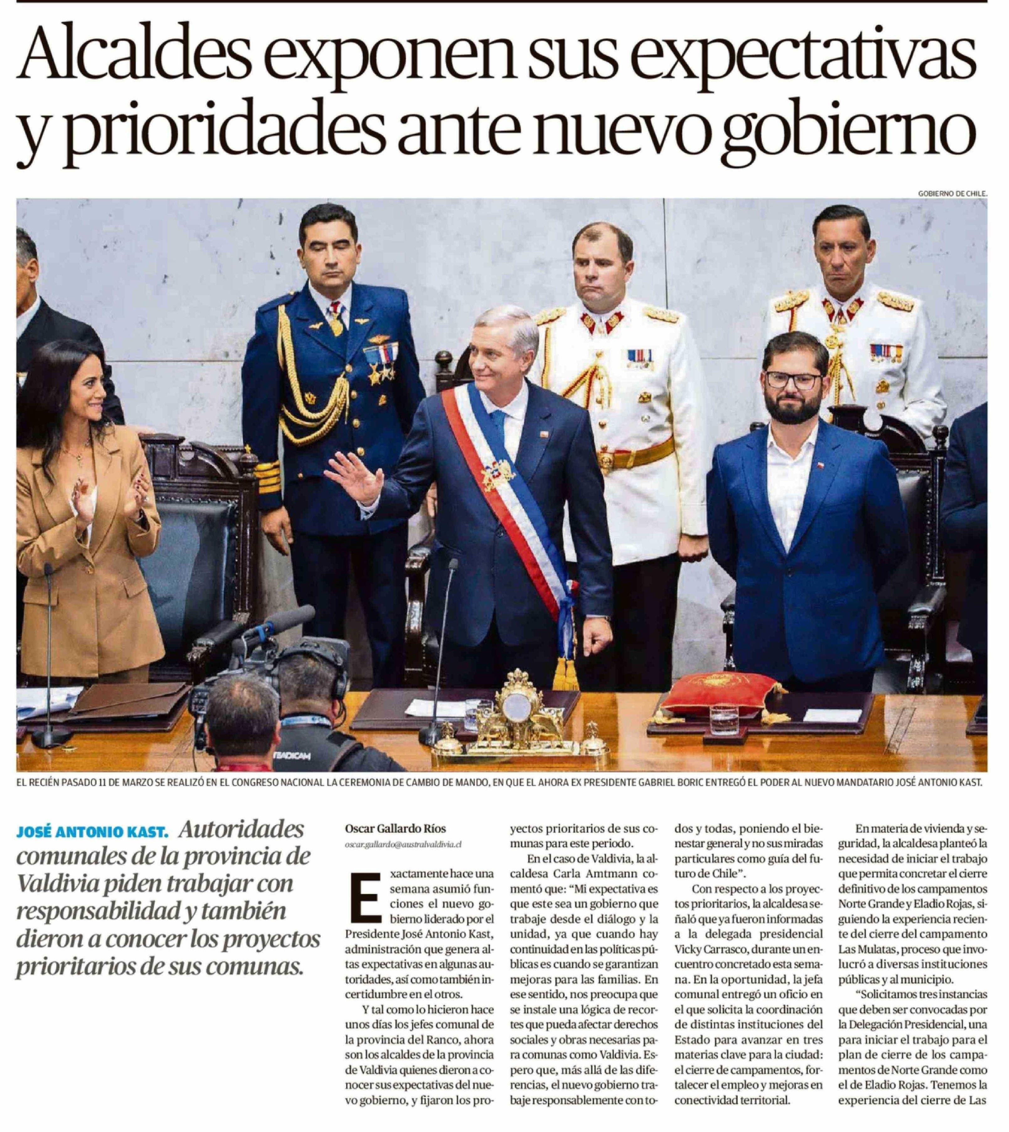 Alcaldes exponen sus expectativas y prioridades ante nuevo gobierno 18-03-2026 Diario Austral Región de Los Ríos |