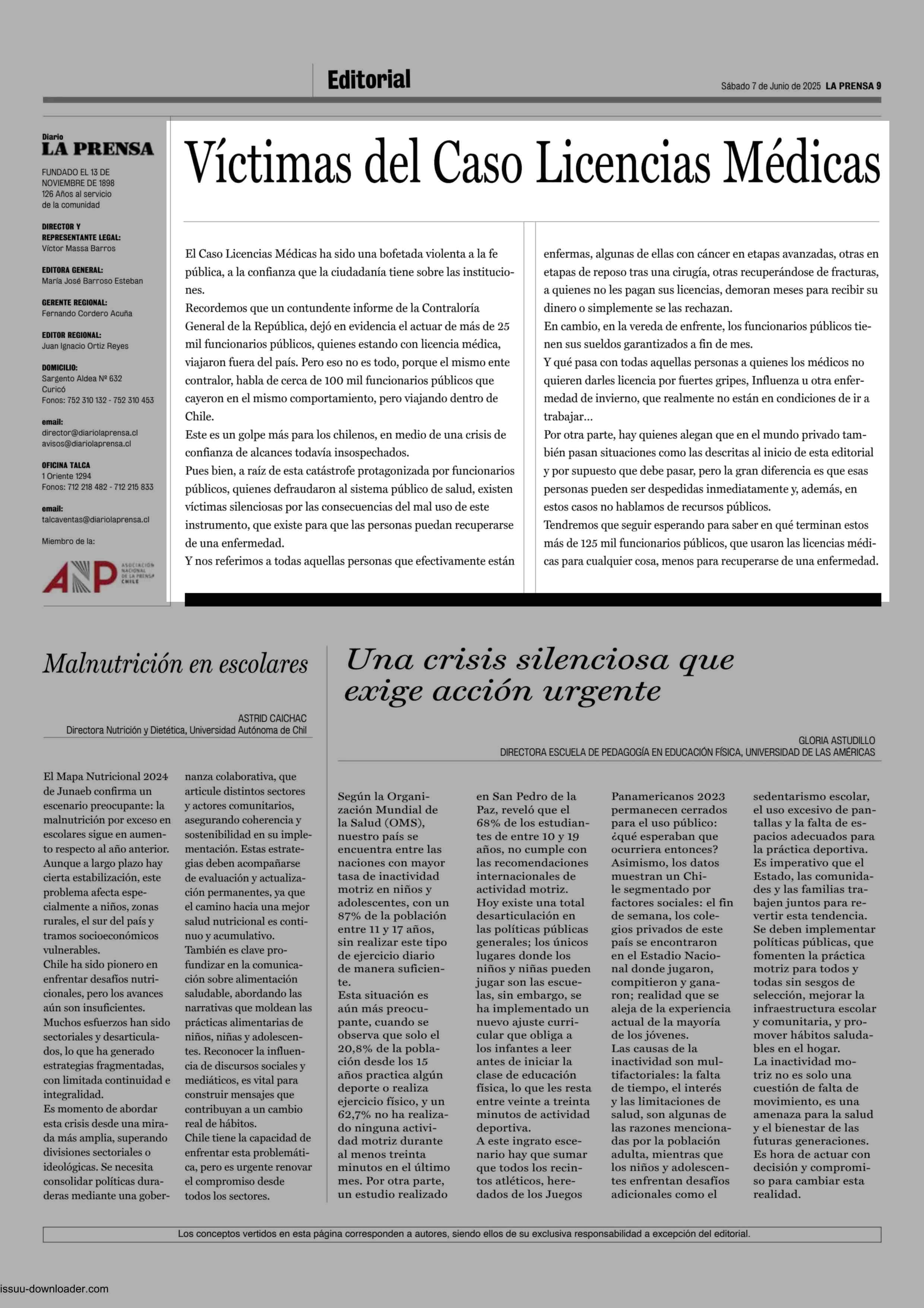 EDITORIAL: Victimas del Caso Licencias Médicas 07-06-2025 La Prensa de Curicó |
