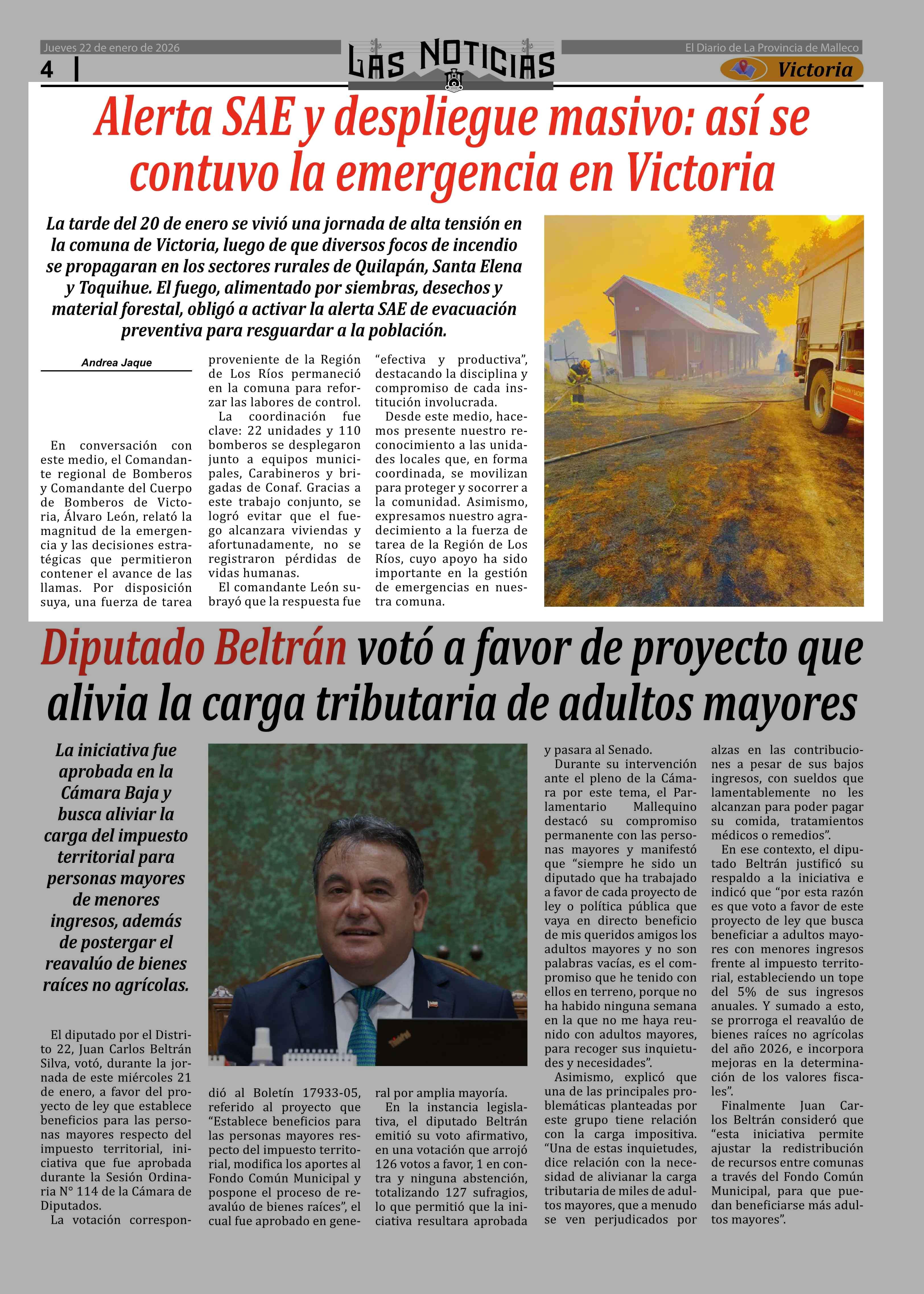 Alerta SAE y despliegue masivo: así se contuvo la emergencia en Victoria 22-01-2026 Las Noticias |